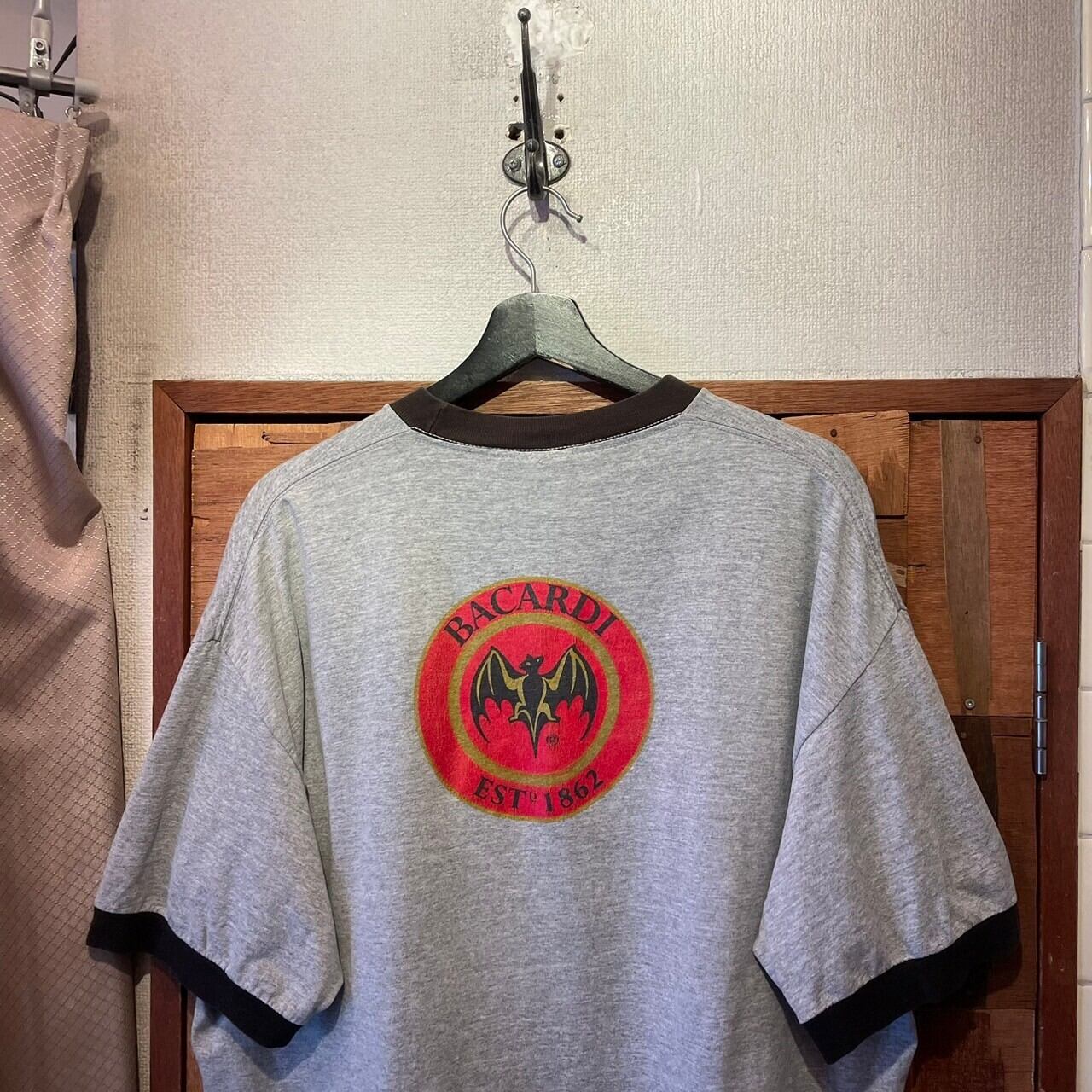“BACARDI” gray×navy×red cotton/poly printed S/S ringer Tee made in USA