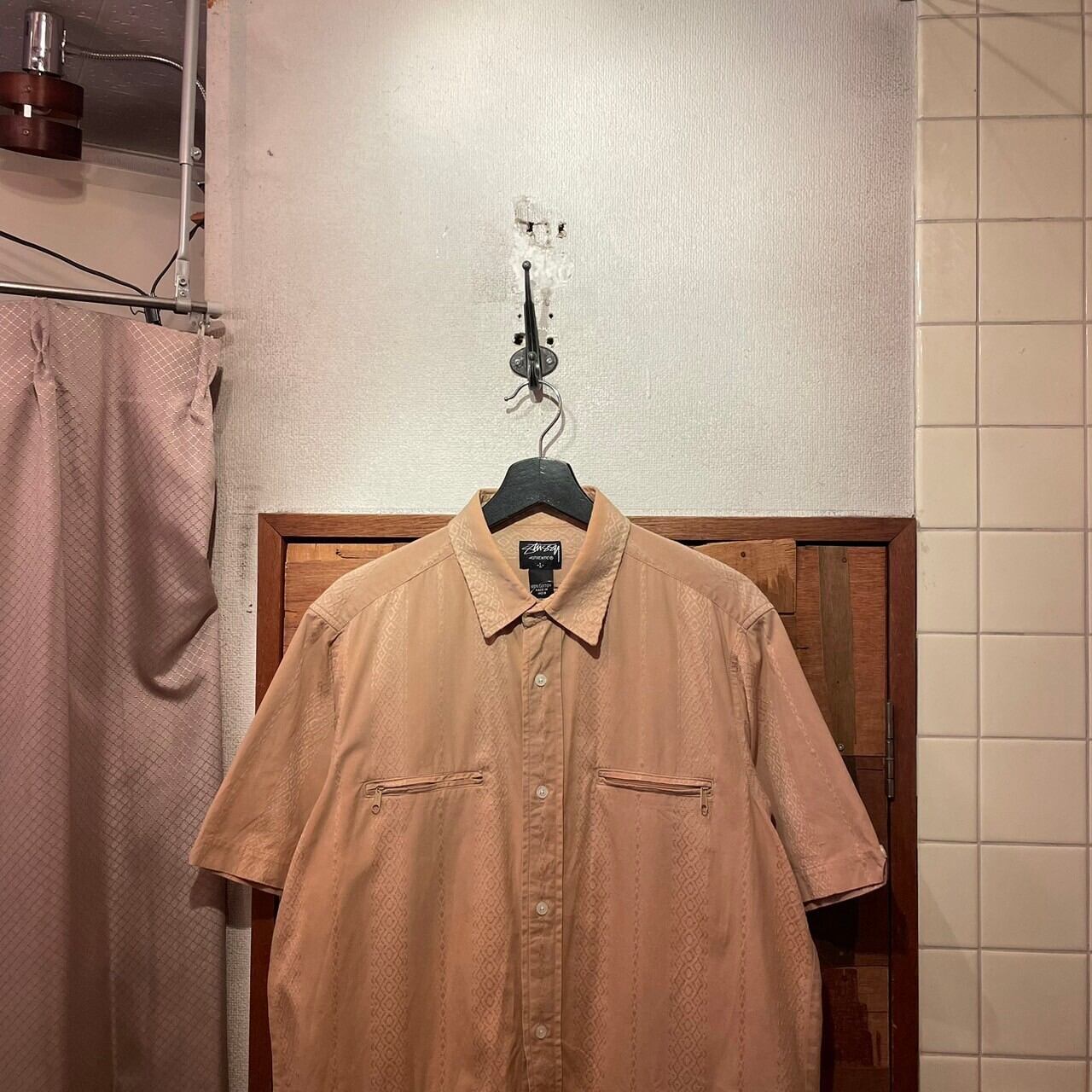 “stussy” 00’s beige×brown cotton design S/S shirt