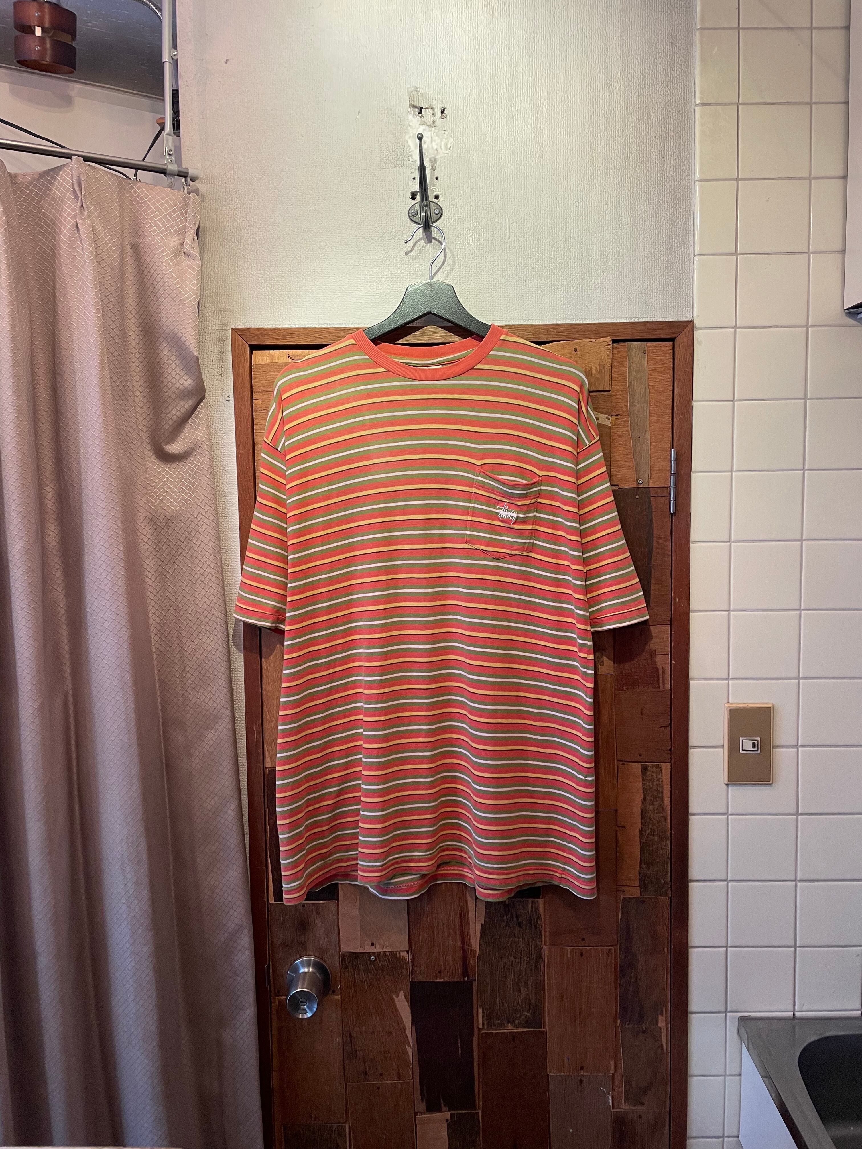 “boot stussy” 90’s orange×green×yellow cotton S/S border Tee