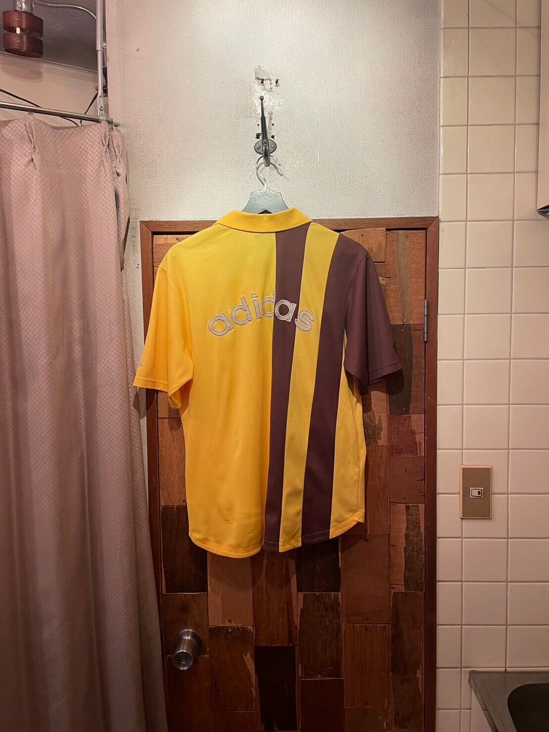 “adidas" 02's yellow×brown polyester S/S skipper shirt