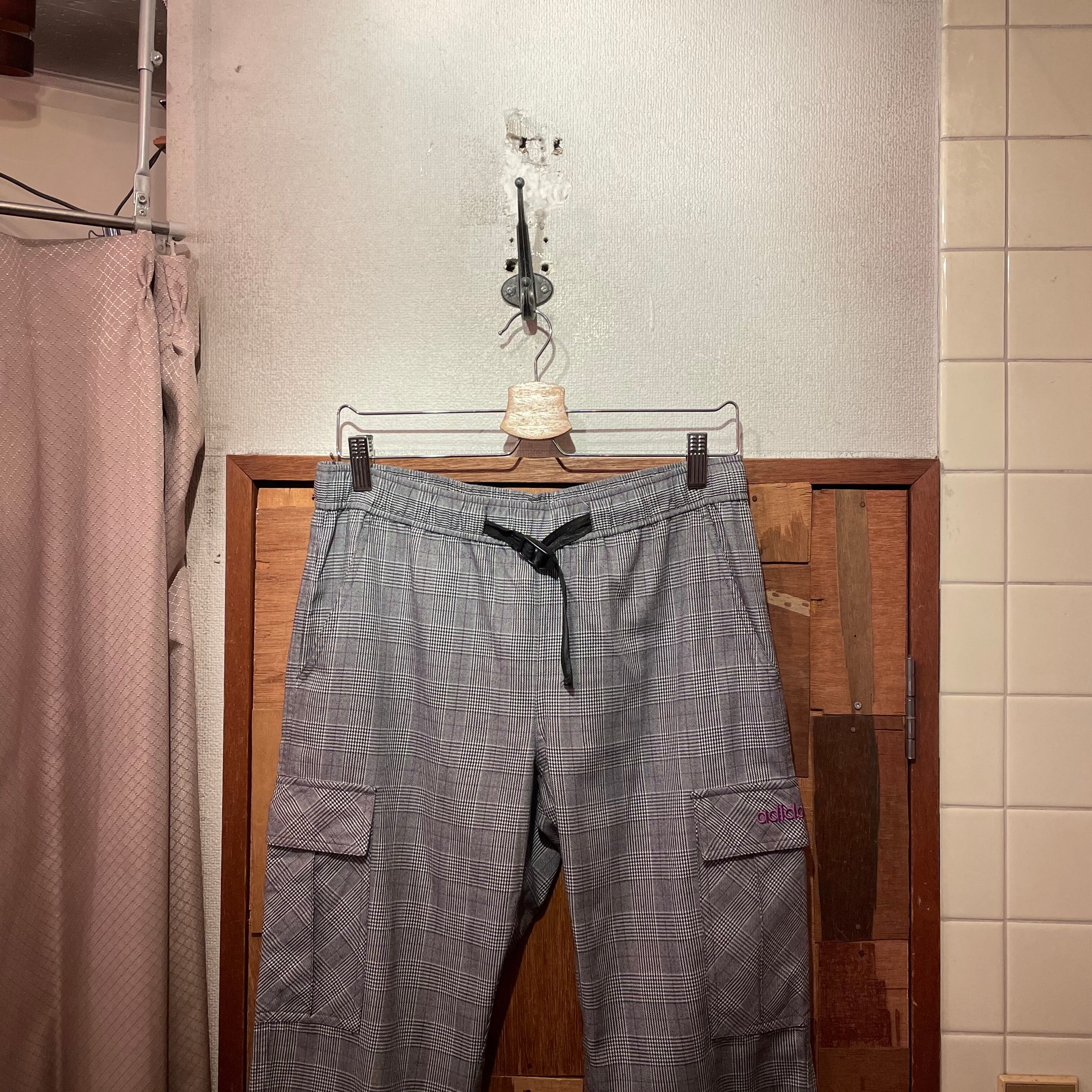 “adidas” 2012!! black×white×purple poly/cotton check climbing pants