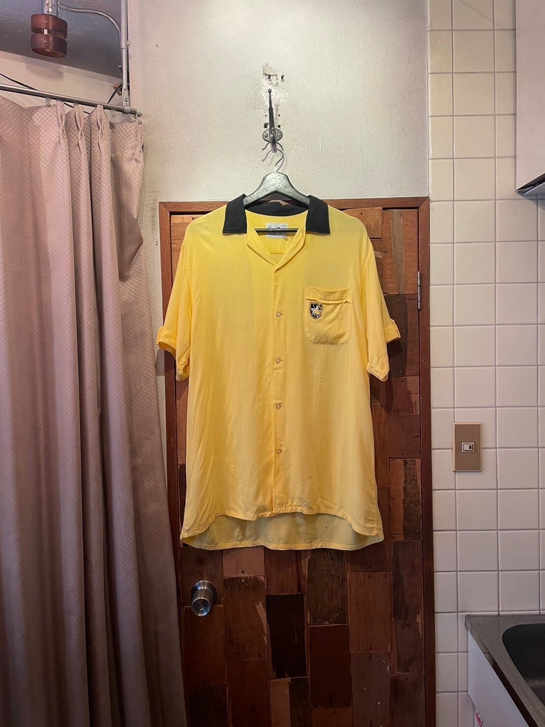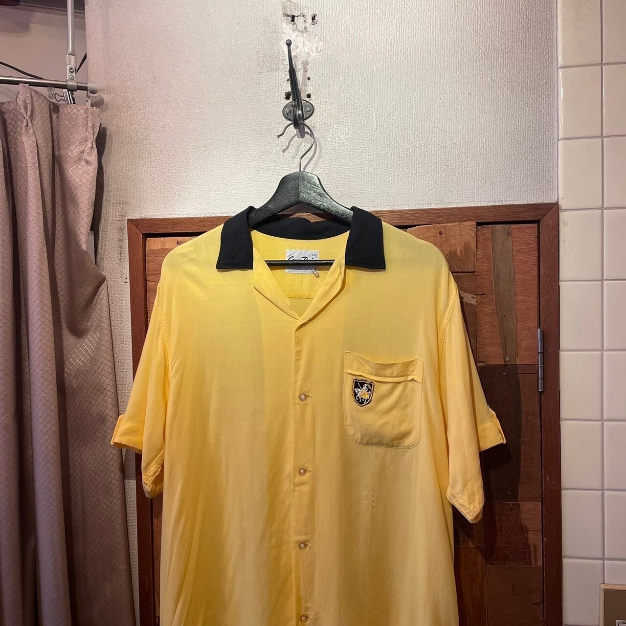 “Crown Prince” 60's yellow×black rayon S/S open-collar shirt