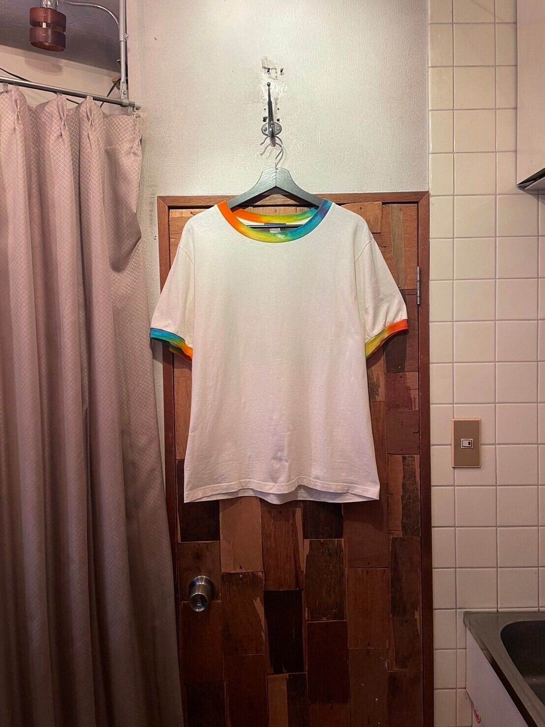 “HENPILATION” 90's〜00's white×multicolor cotton design S/S ringer Tee