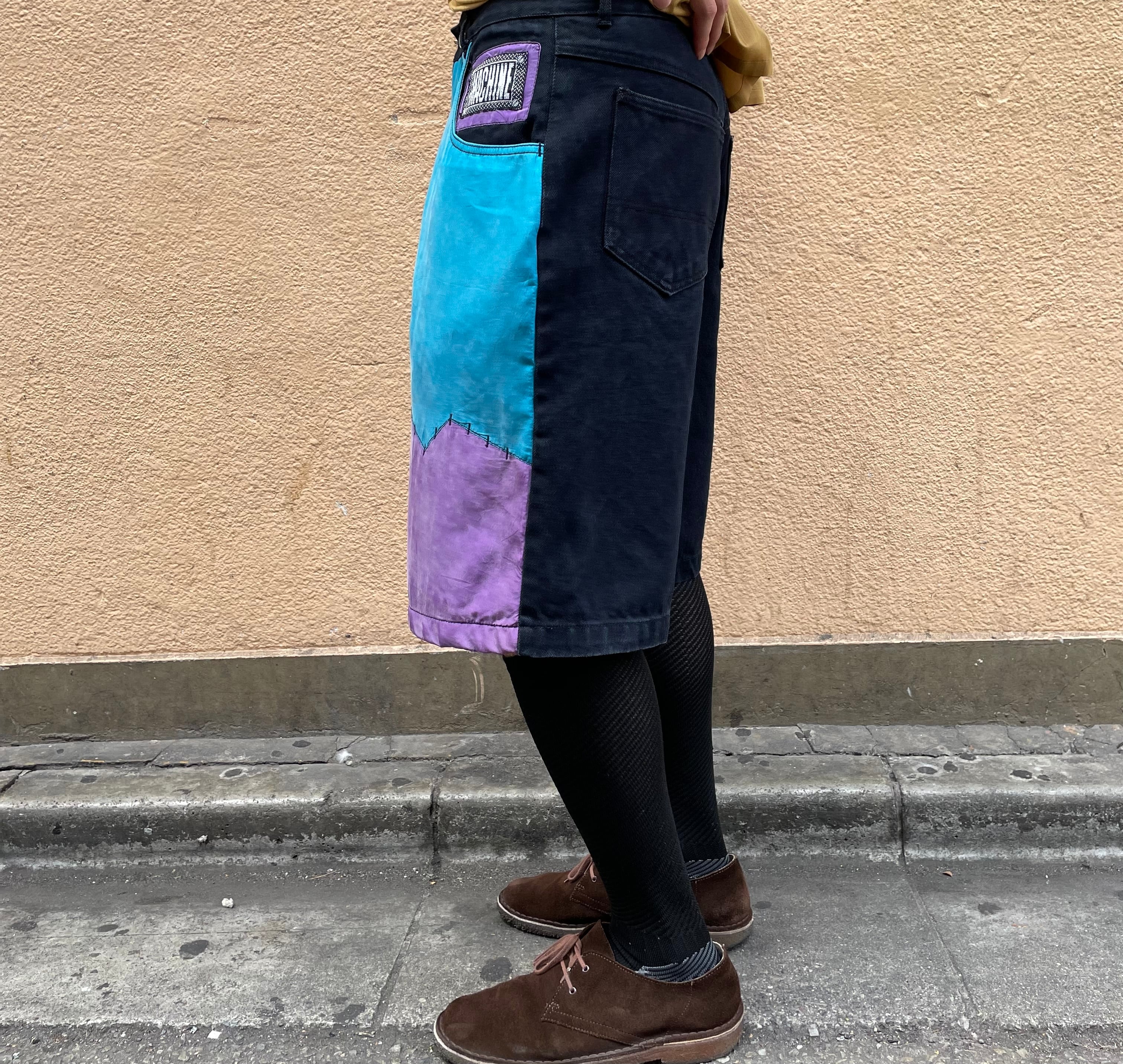 “MACHINE” 90’s black×light blue×purple design cropped pants