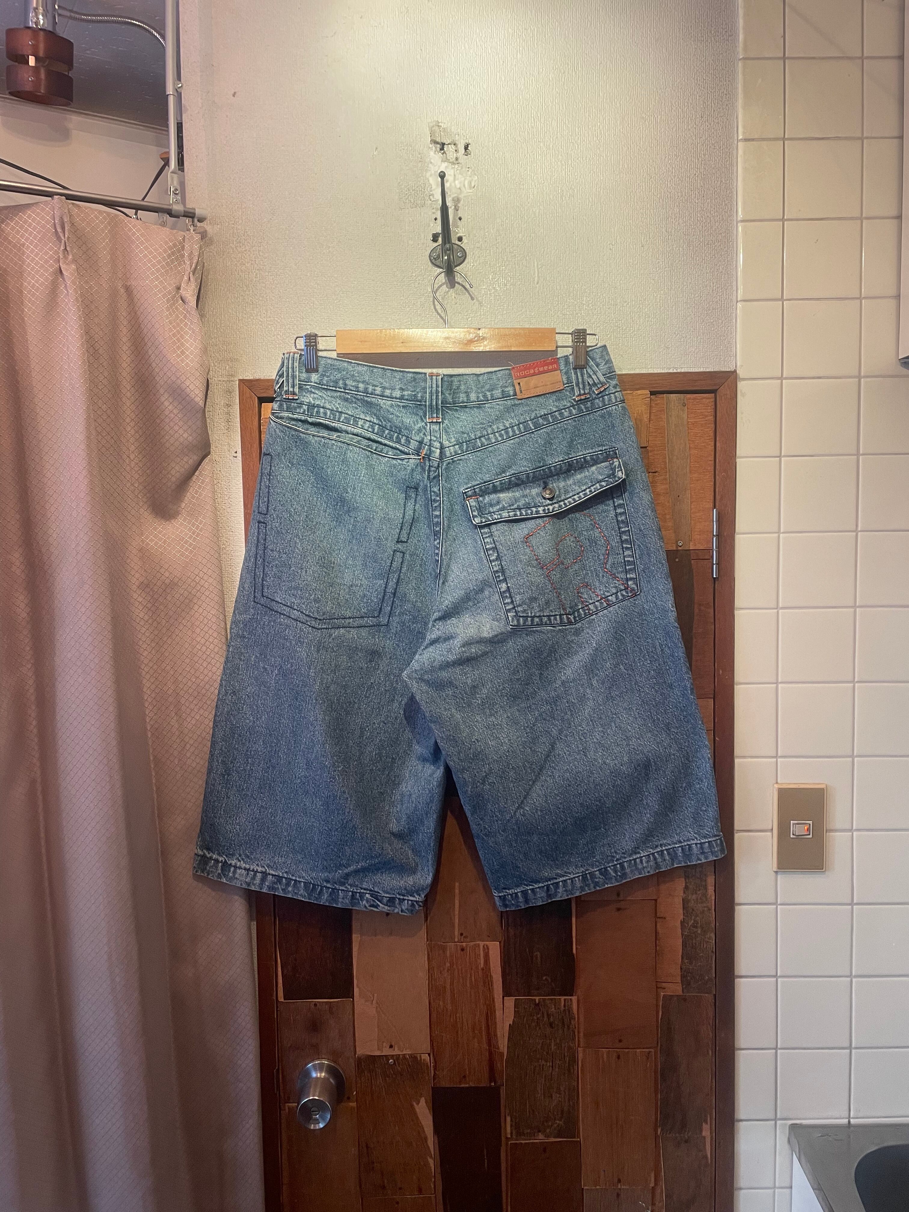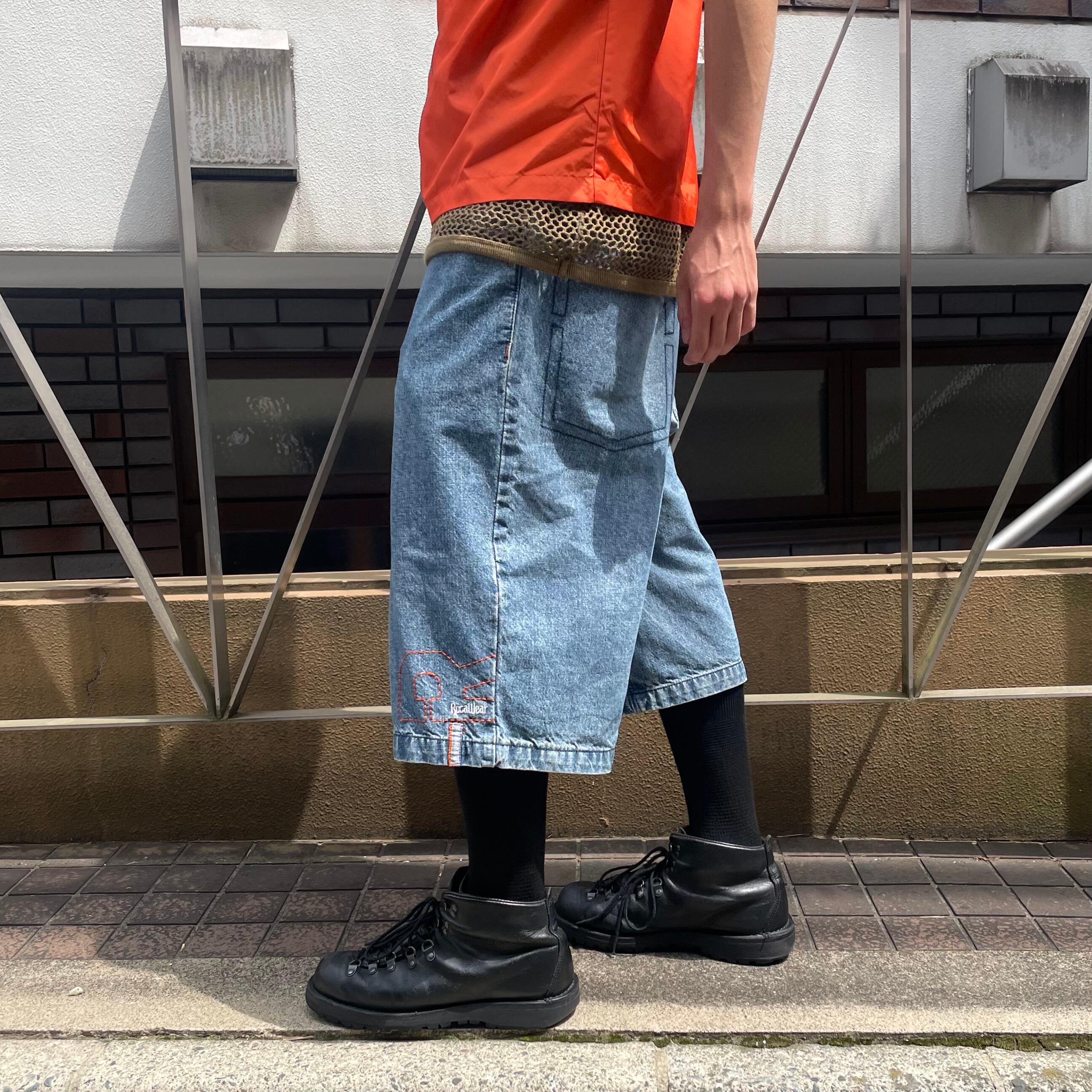 “Roca Wear” 90’s indigo×orange cotton denim cropped pants