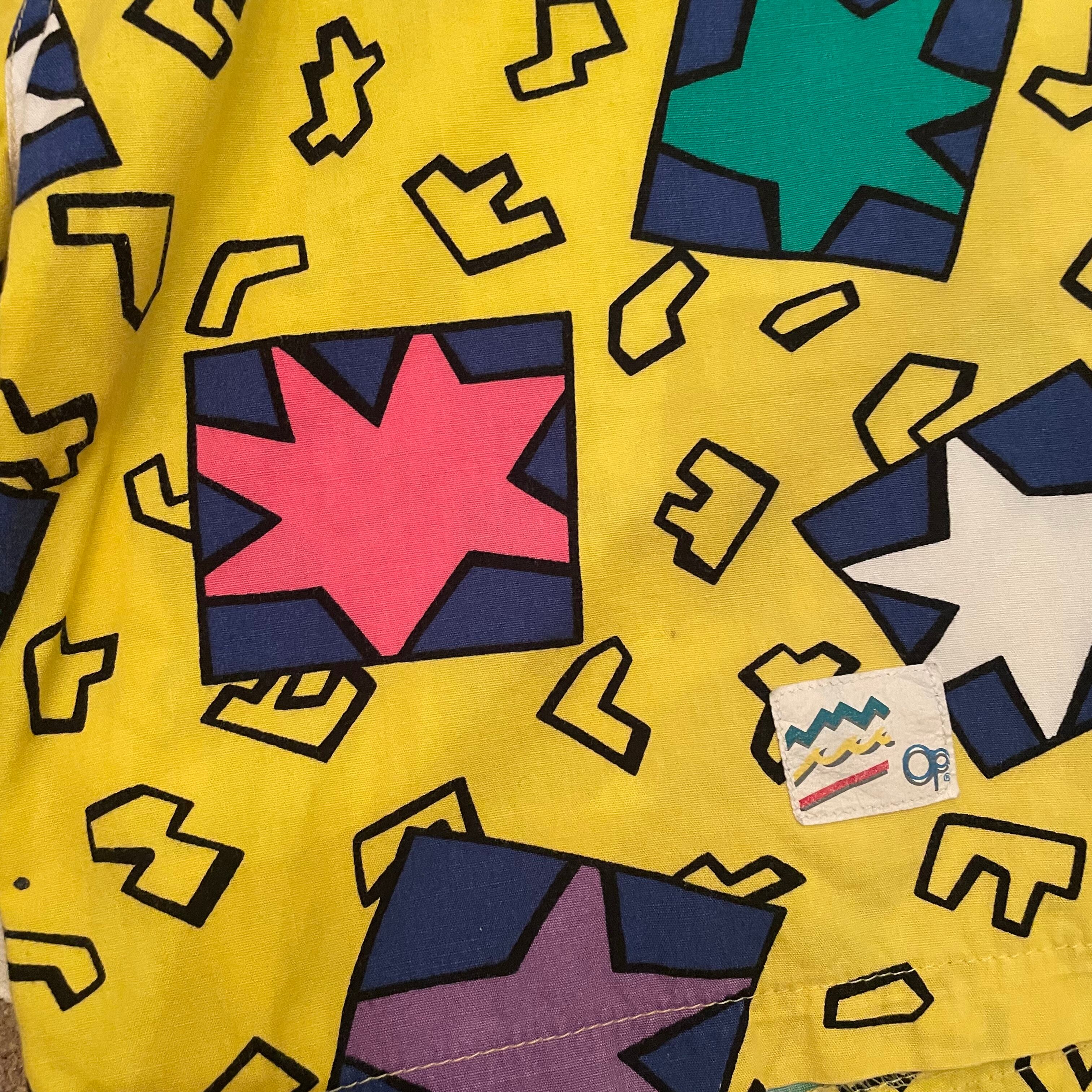 “OCEAN PACIFIC” 80’s yellow×multi color cotton design shorts