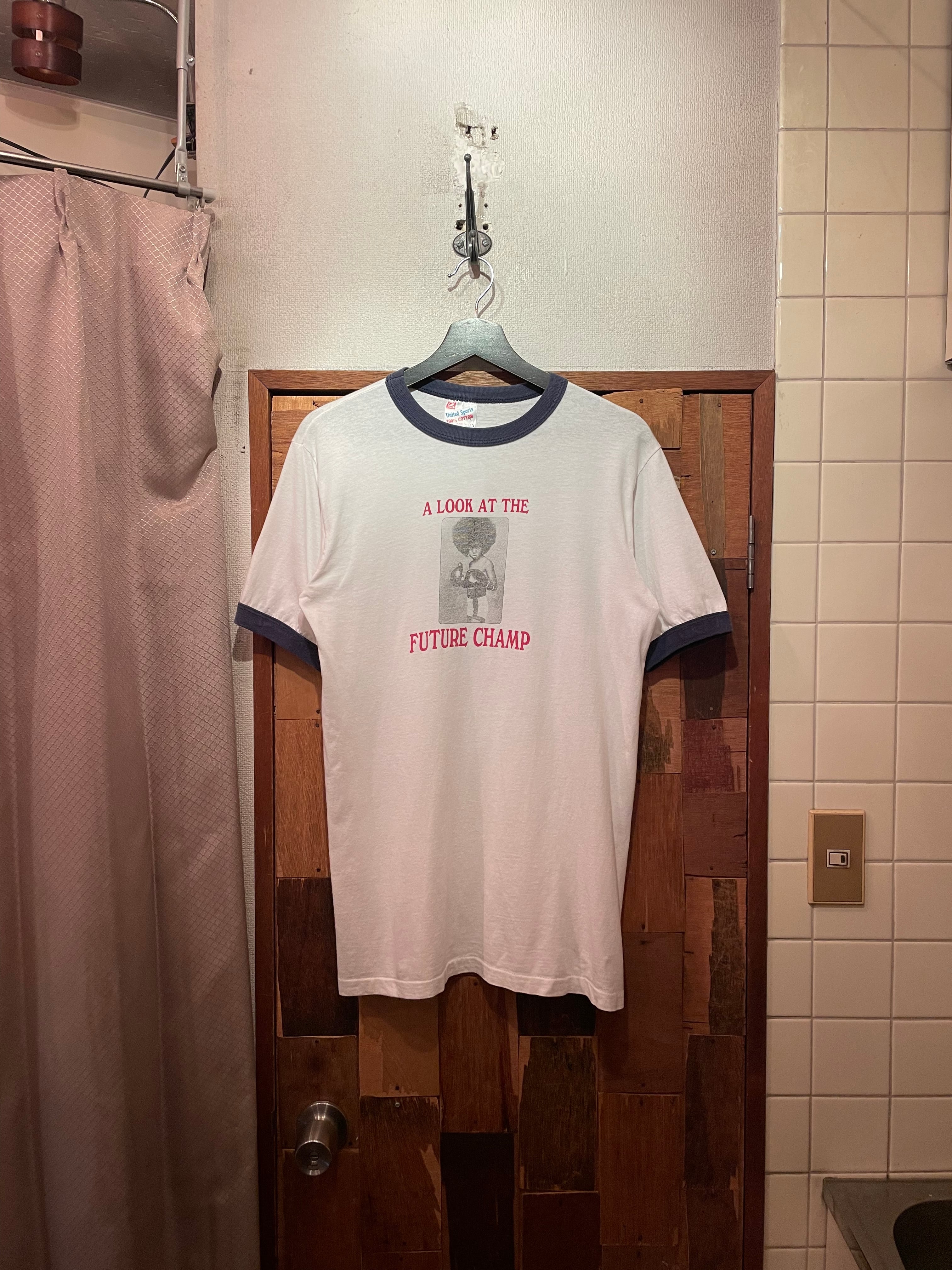 “United Sports” 90’s white×navy×red cotton printed S/S ringer Tee made in U.S.A