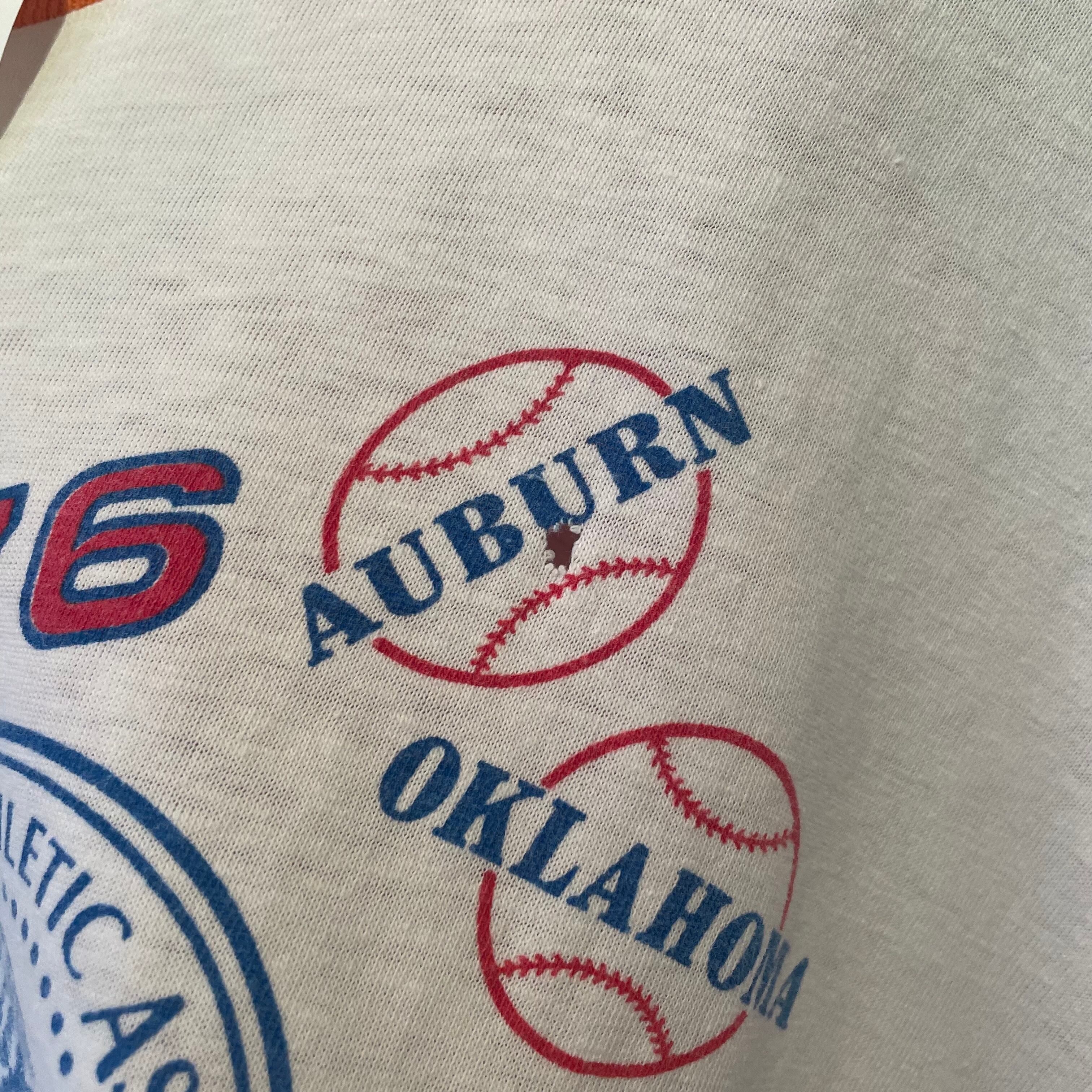 “ARTEX” 70’s white×orange×blue cotton printed S/S ringer Tee