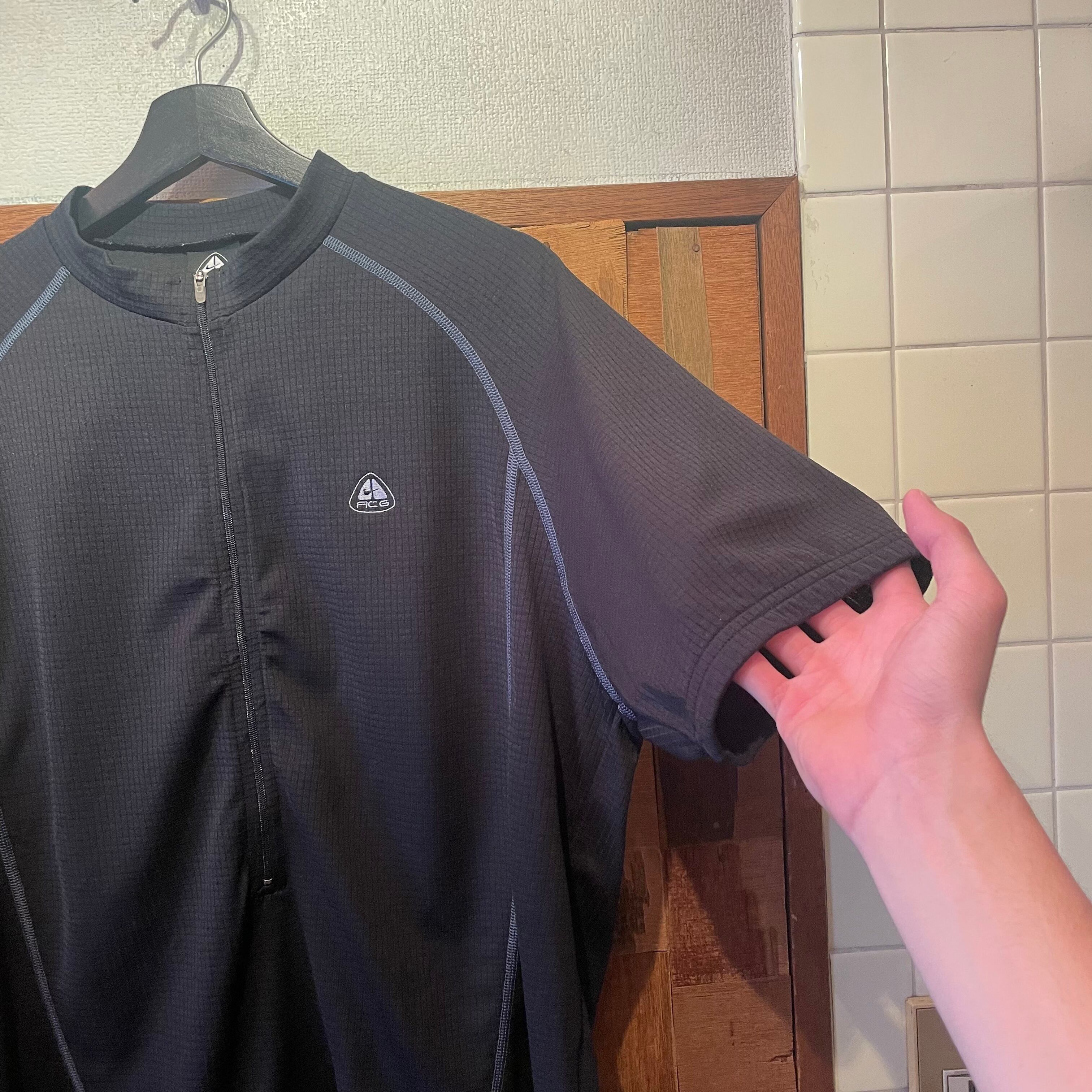 “NIKE ACG” 03’s black×gray polyester S/S half-zip Tee