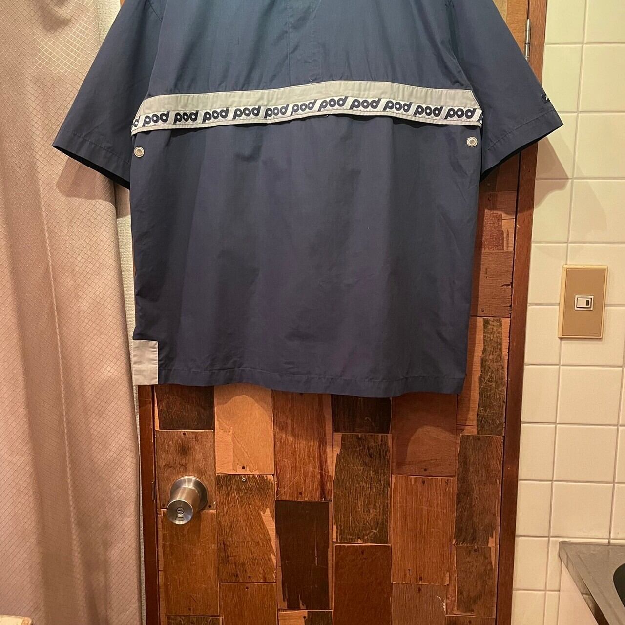 “pod” 90's navy×gray cotton/poly S/S fly front shirt