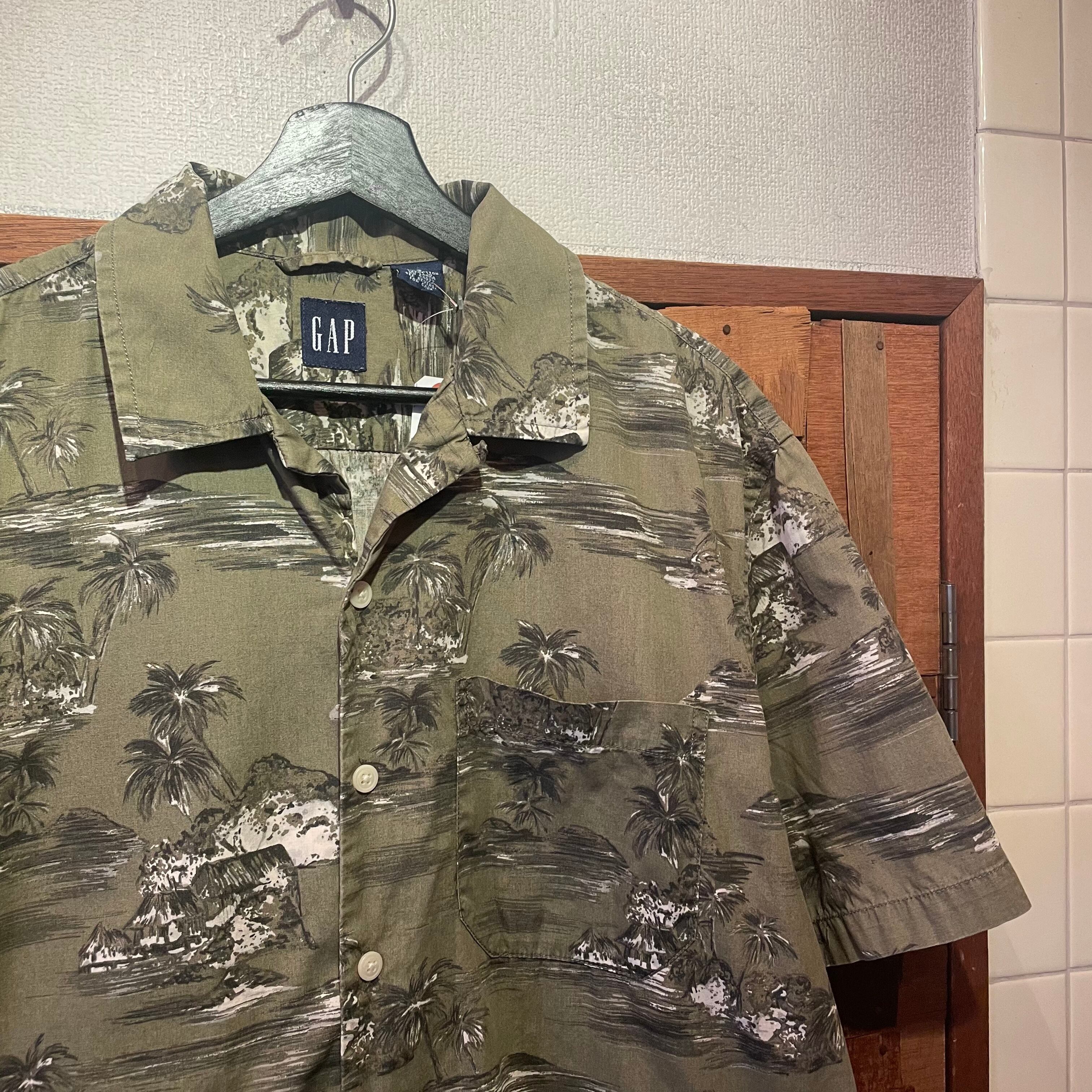 “GAP” 90’s khaki×white cotton design S/S open-color shirt