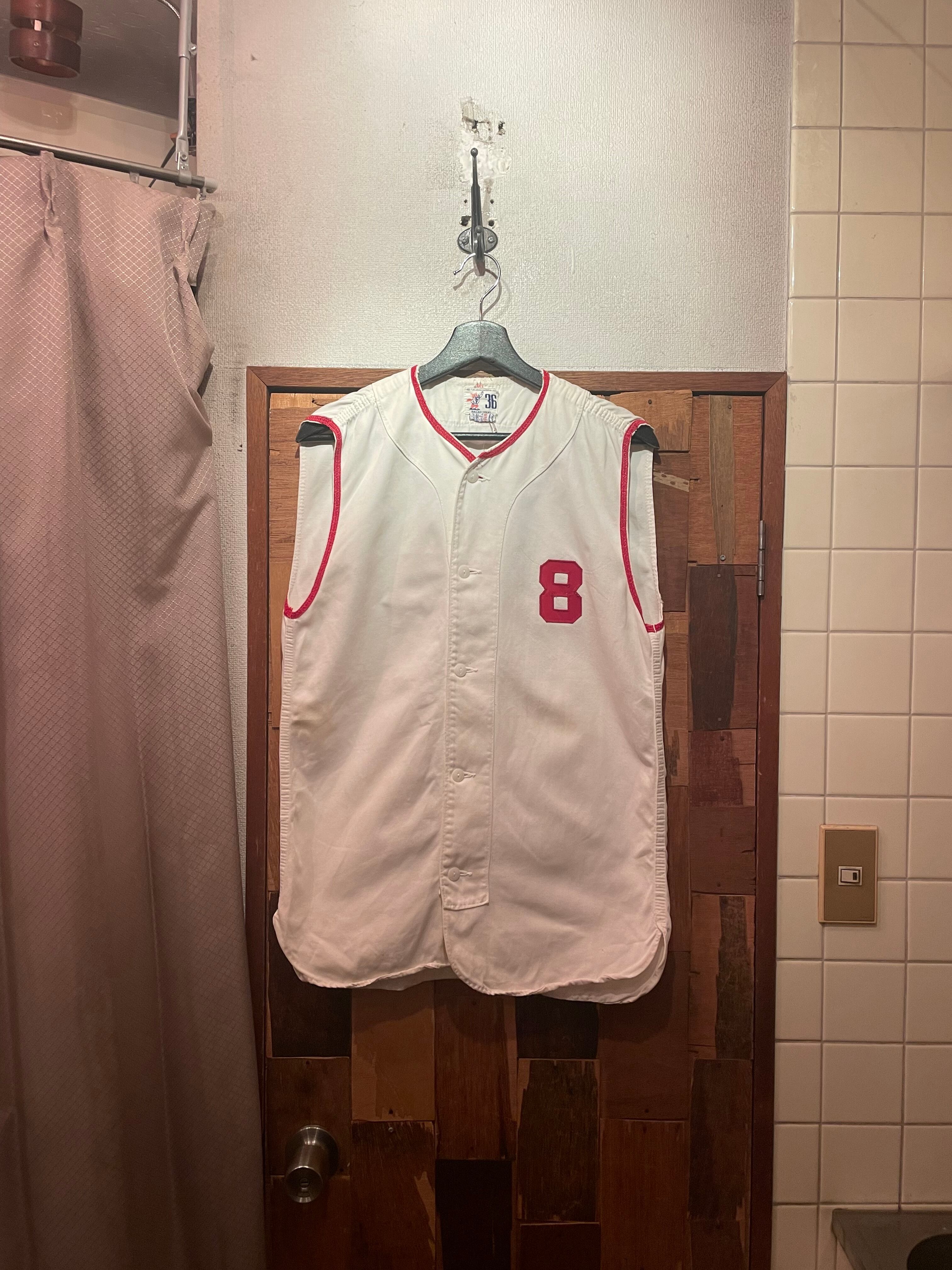 “RED FOX” 50’s~60’s red×white cotton design baseball shirt