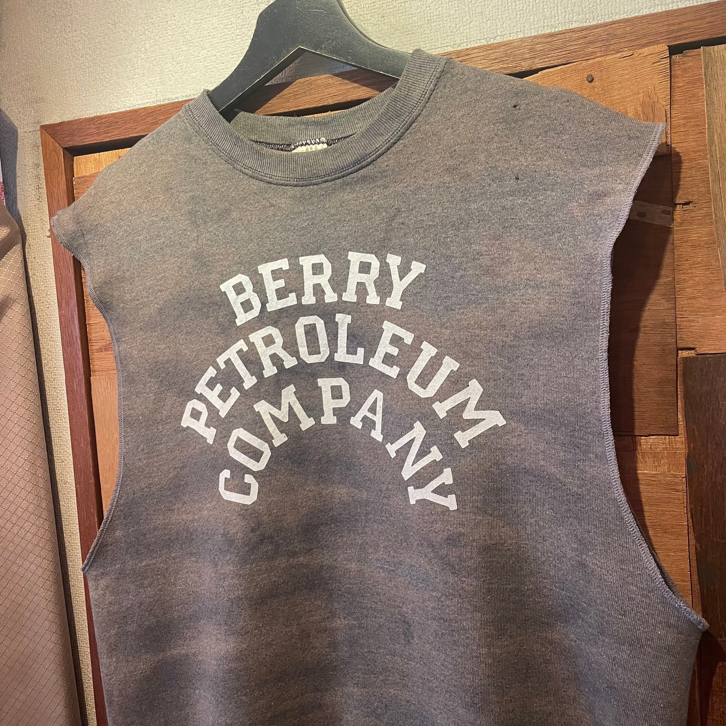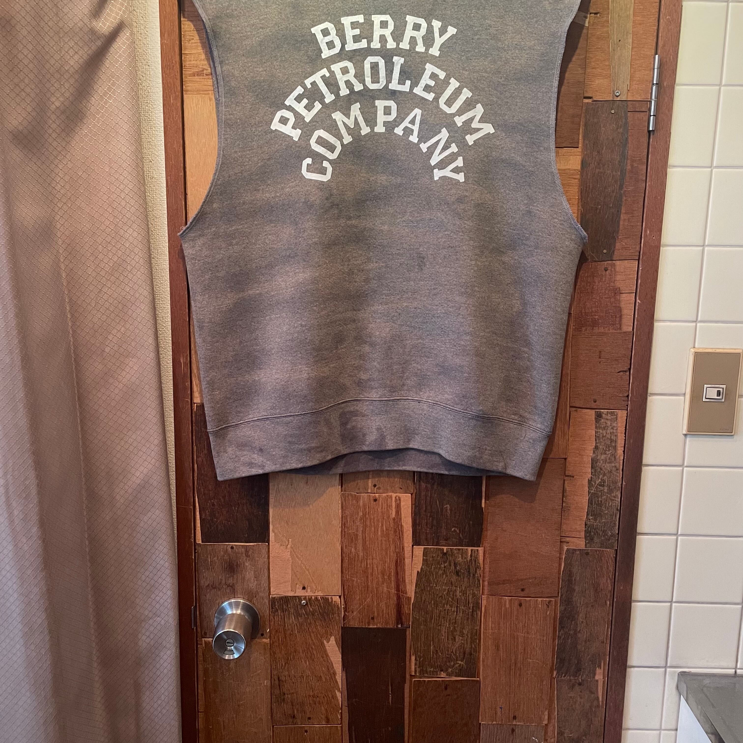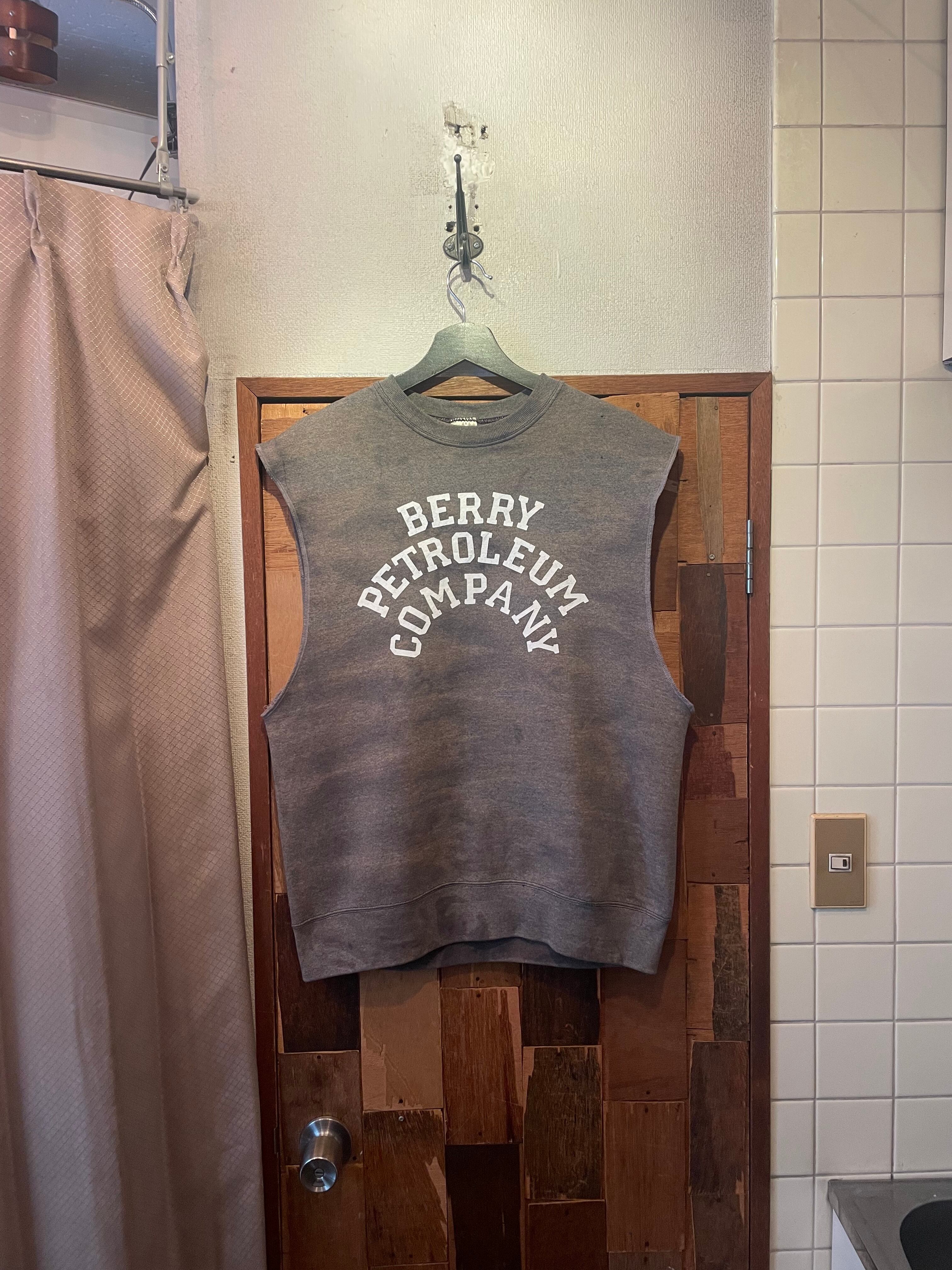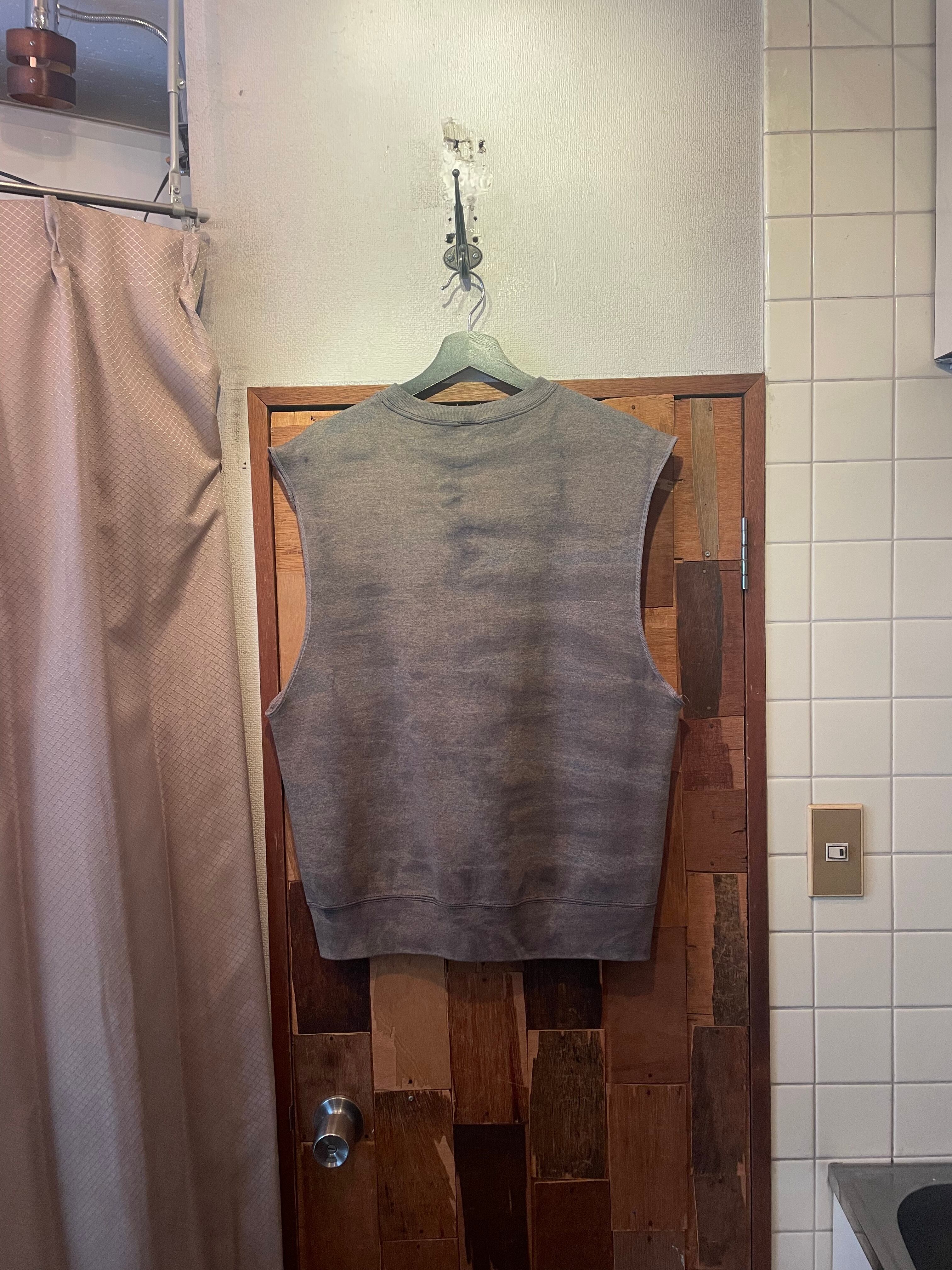 “FRUIT OF THE ROOM” 90’s charcoal gray×white cotton/poly printed no sleeve sweat