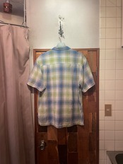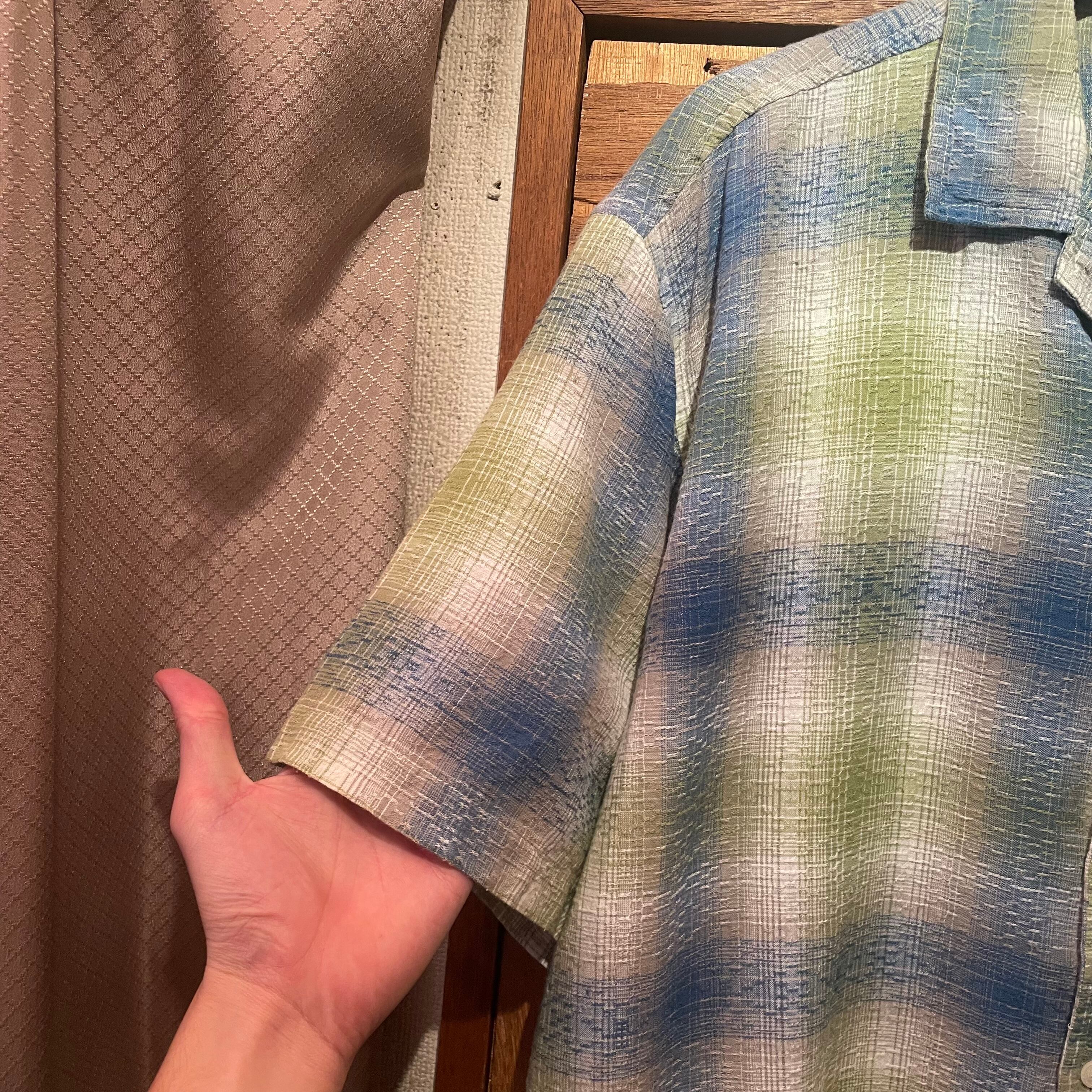 “Ocean Pacific” 90’s light green×blue×white cotton design S/S shirt