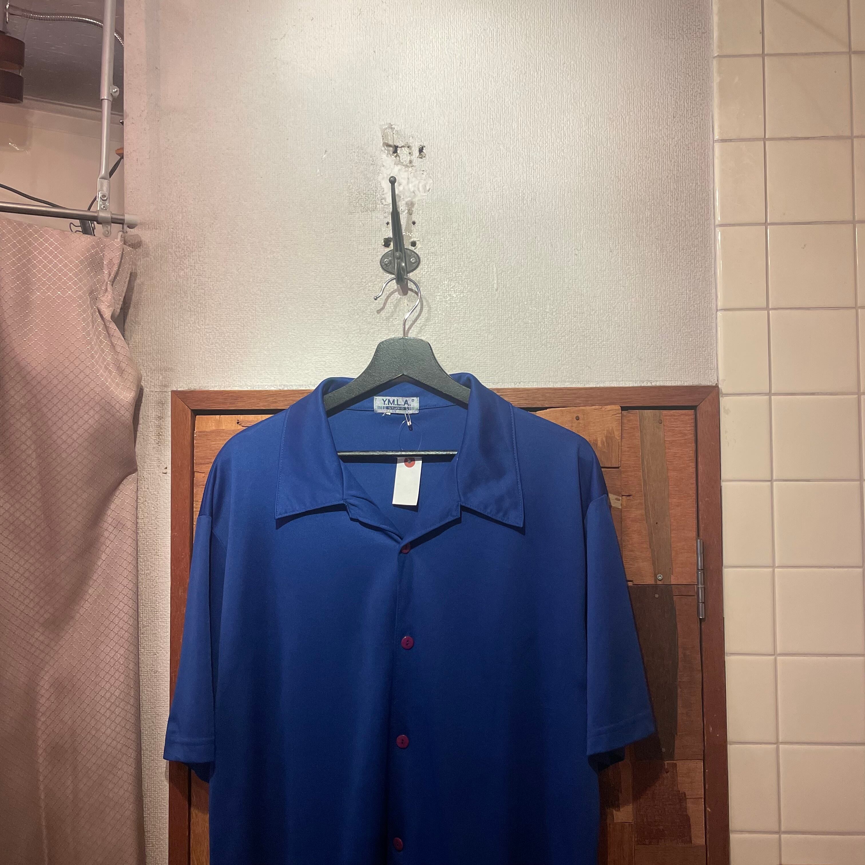 “Y,M,L,A” 00’s blue polyester S/S open-color shirt