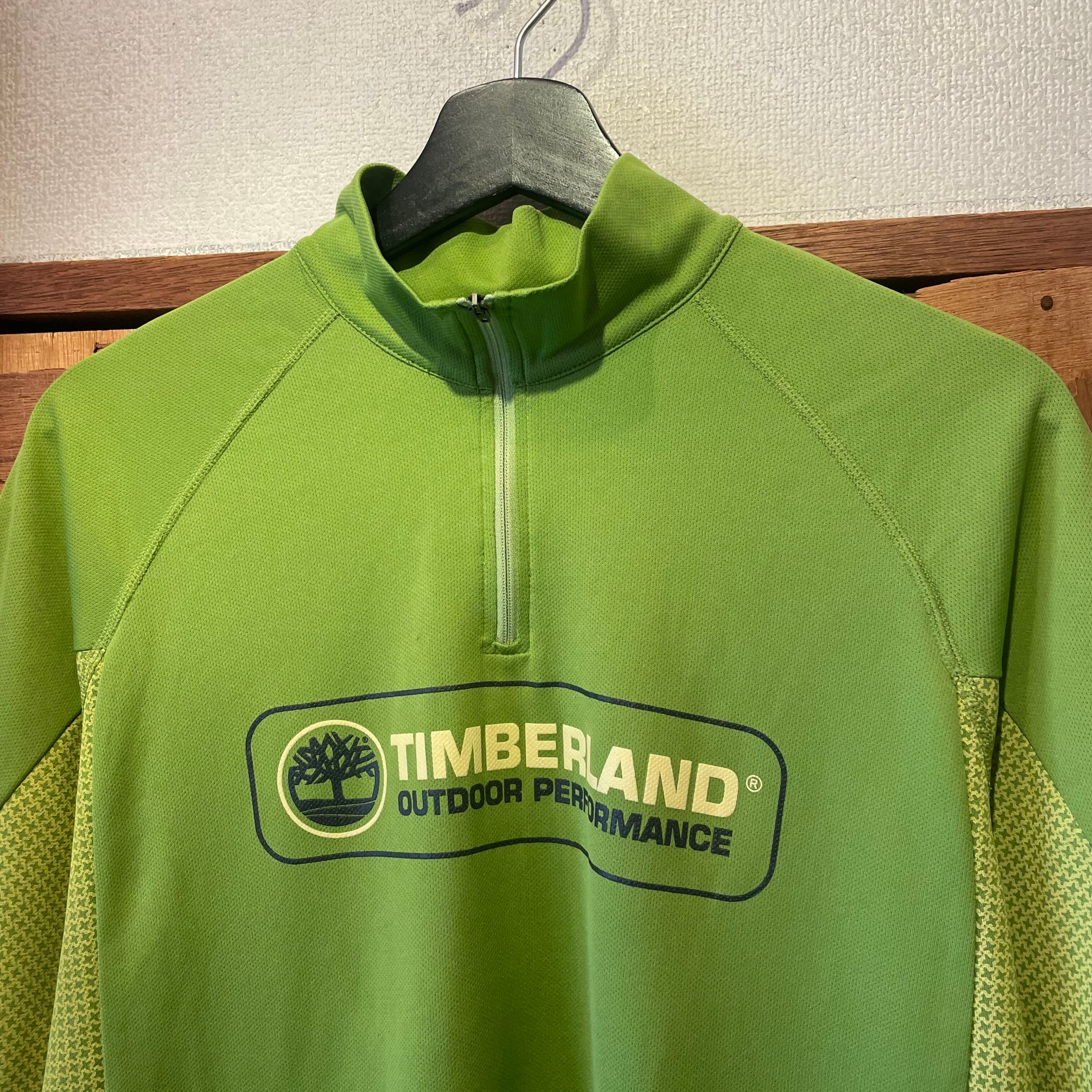 “timberland” 00’s light green polyester half-zip printed S/S Tee
