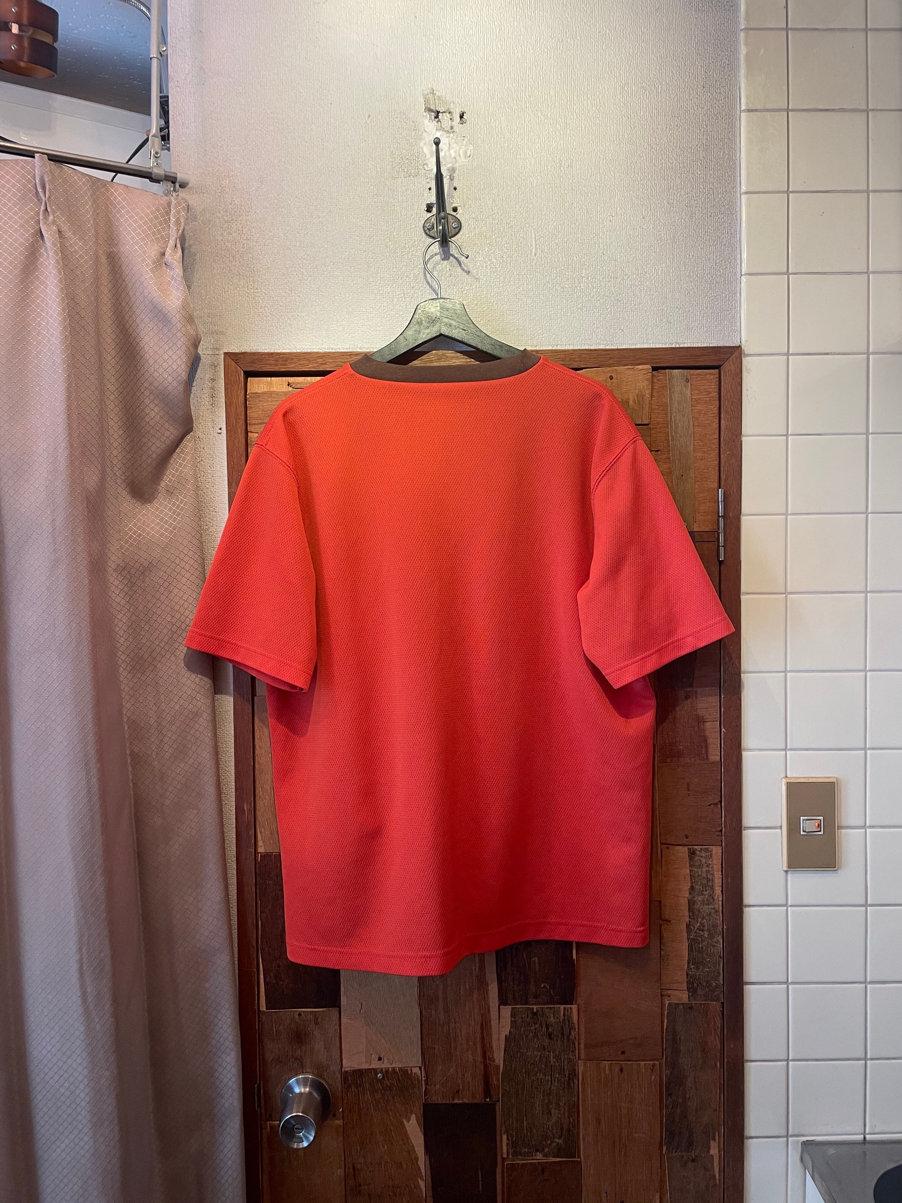 “stussy” 90’s~00’s orange×brown cotton/poly mesh design reversible S/S Tee
