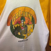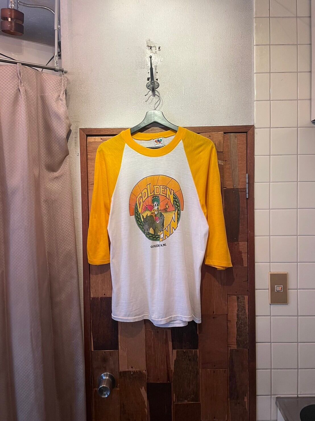 “Vogel” 80's〜90's yellow×white cotton/poly printed raglan Tee