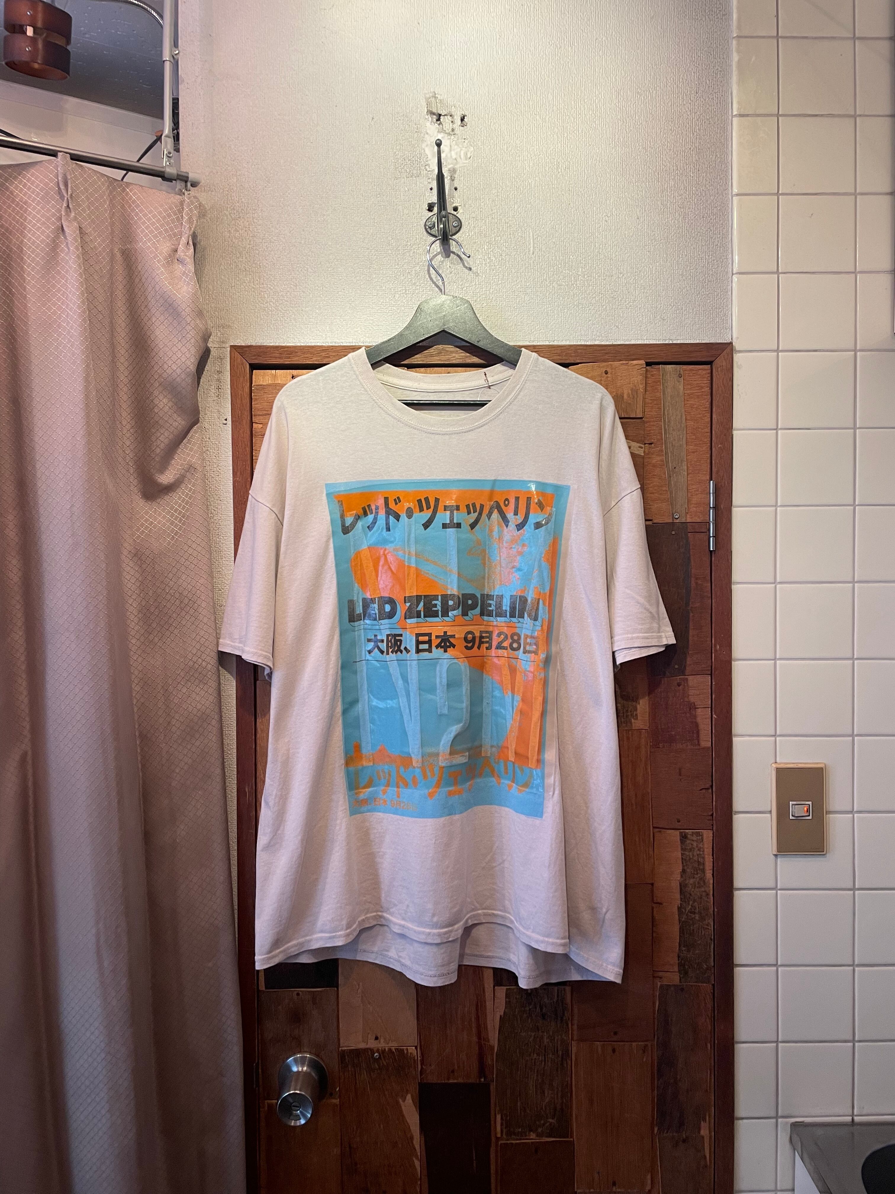 “brand unknown” 00’s 「レッド・ツェッペリン」 beige×multi color cotton/poly printed S/S Tee