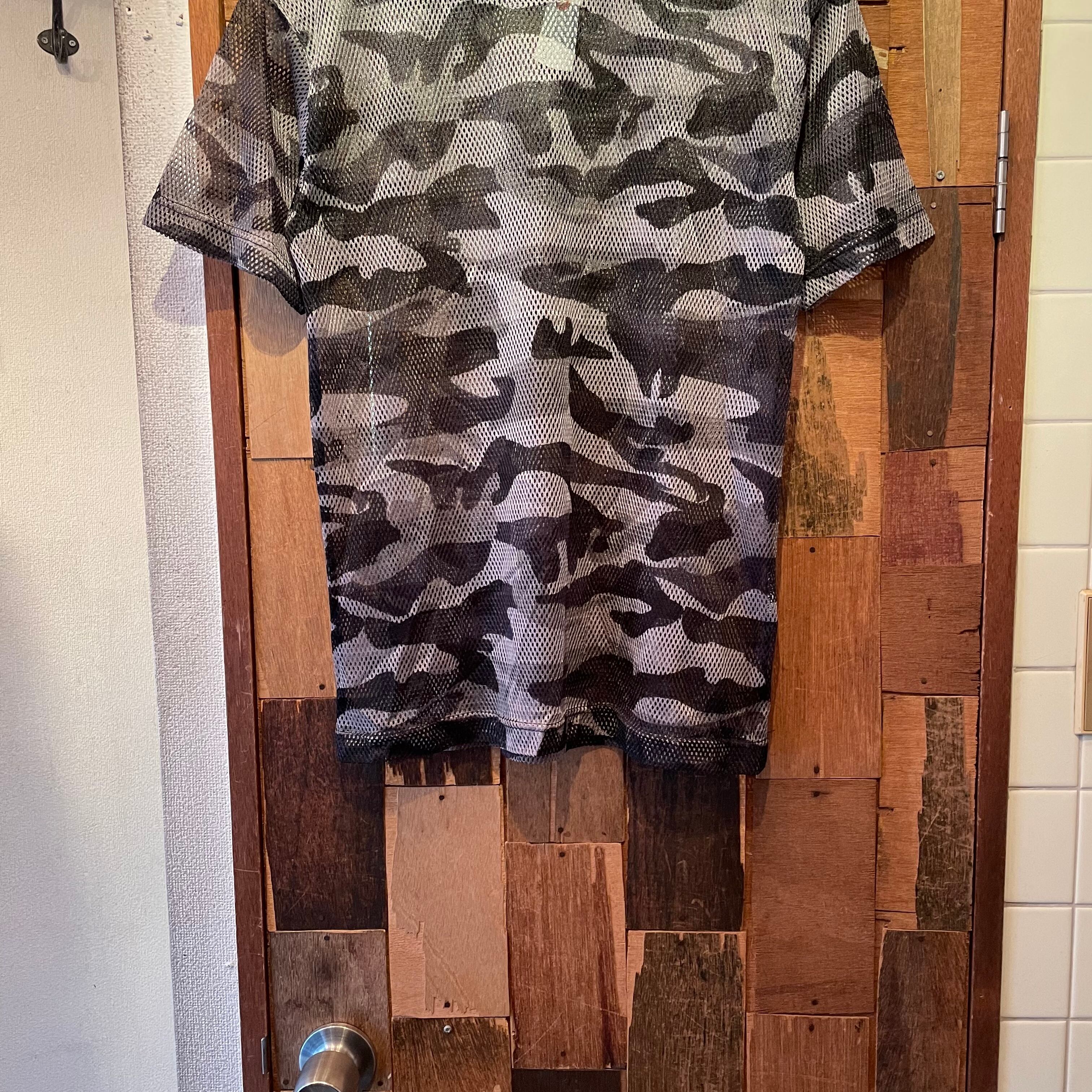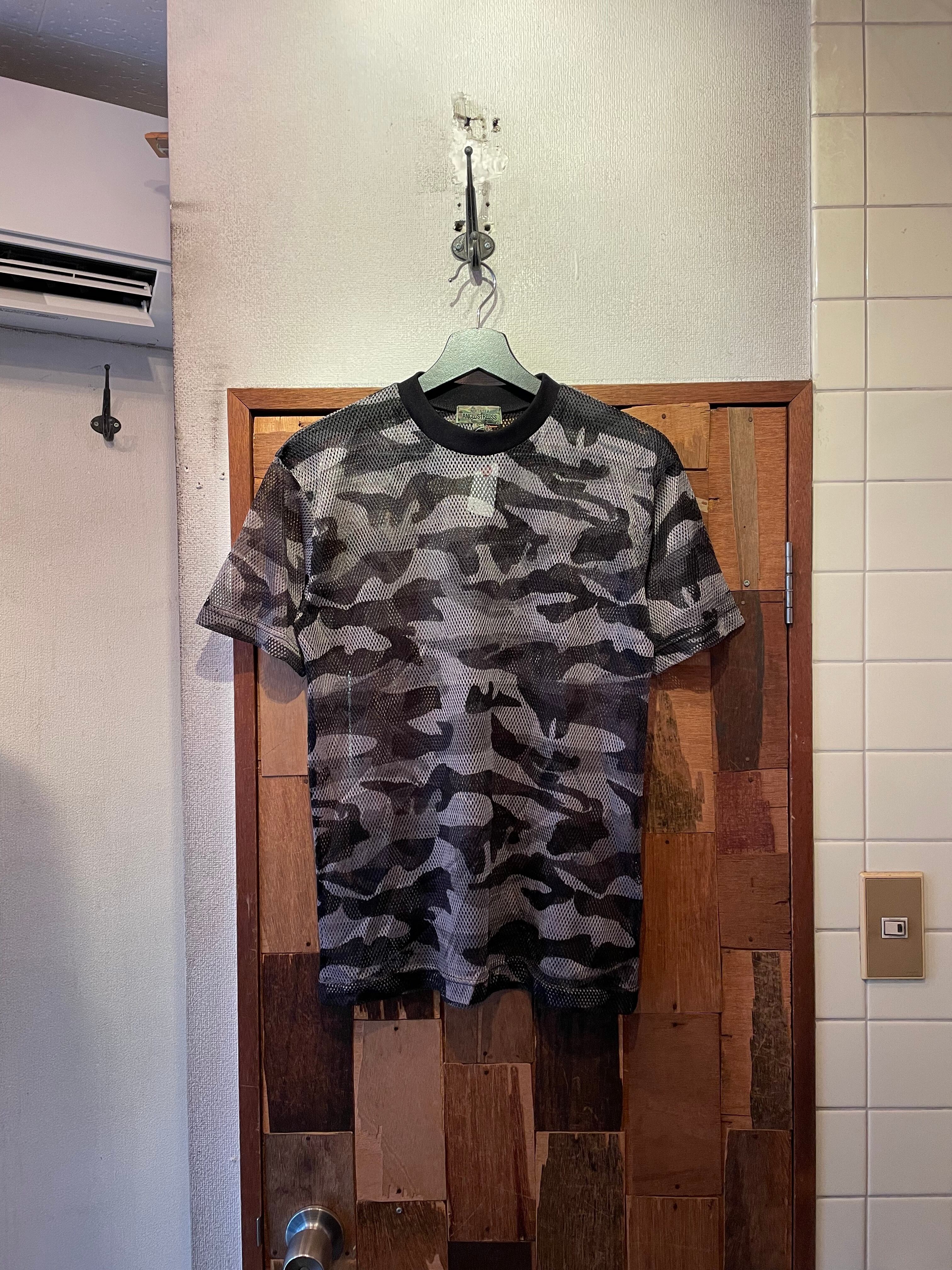 “ANC STR SS” gray×black polyester mesh design camo Tee