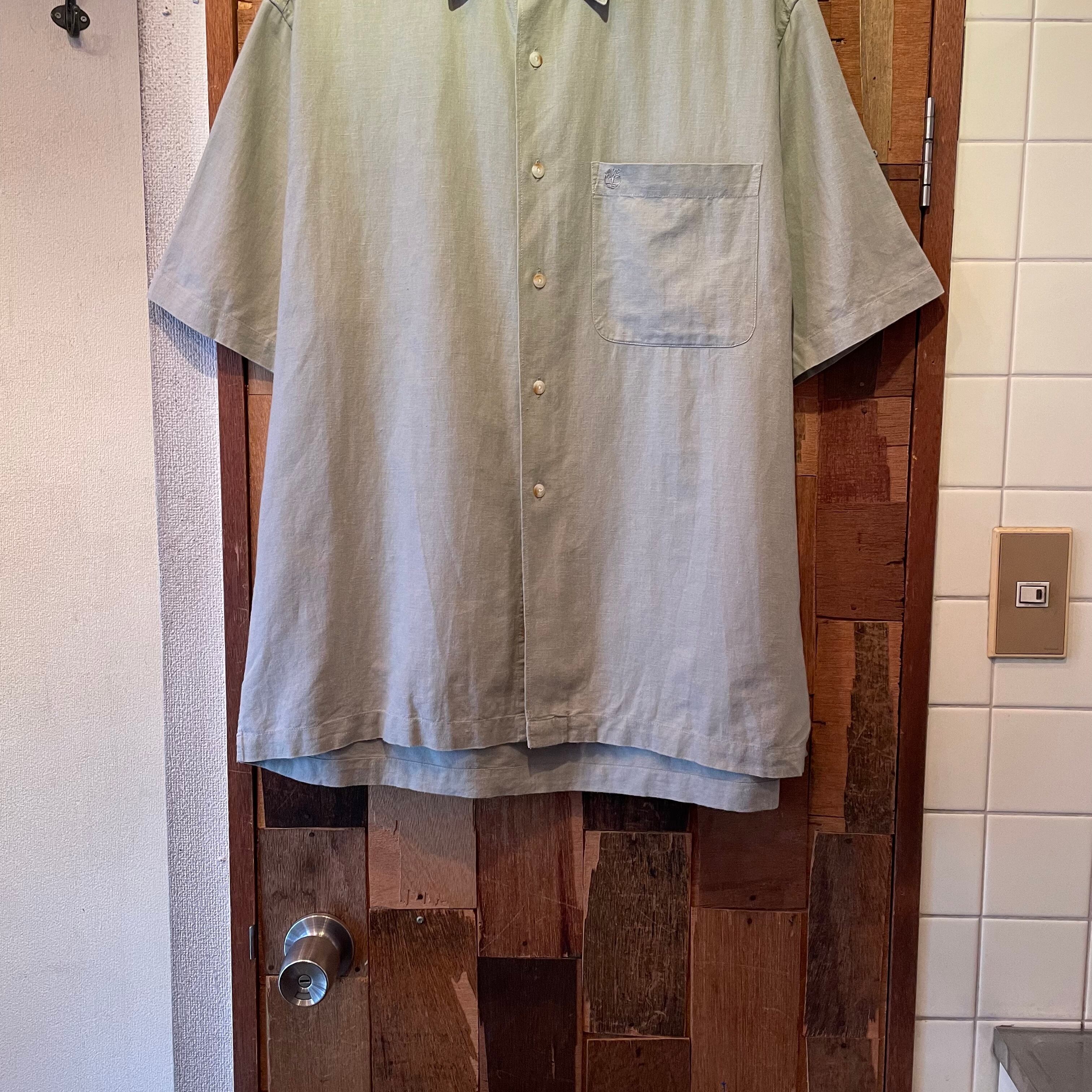 “timberland” 90’s light gray cotton×linen S/S shirt