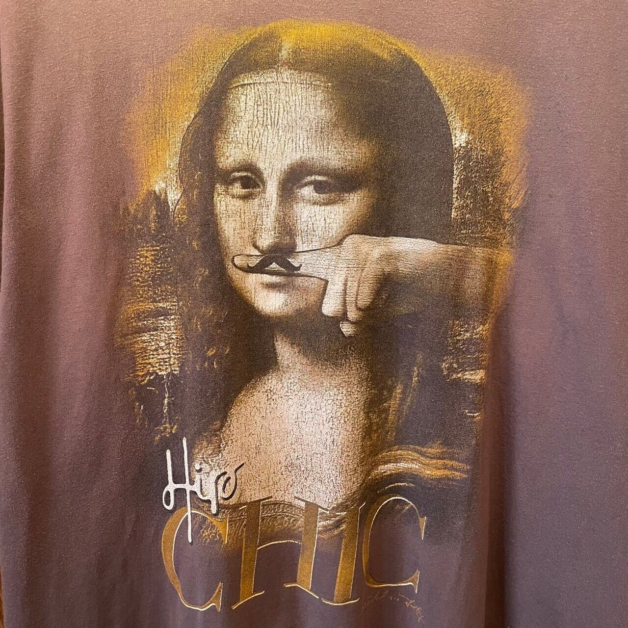 “brand unknown” 00’s 「モナ・リザ」 brown×white cotton printed S/S Tee