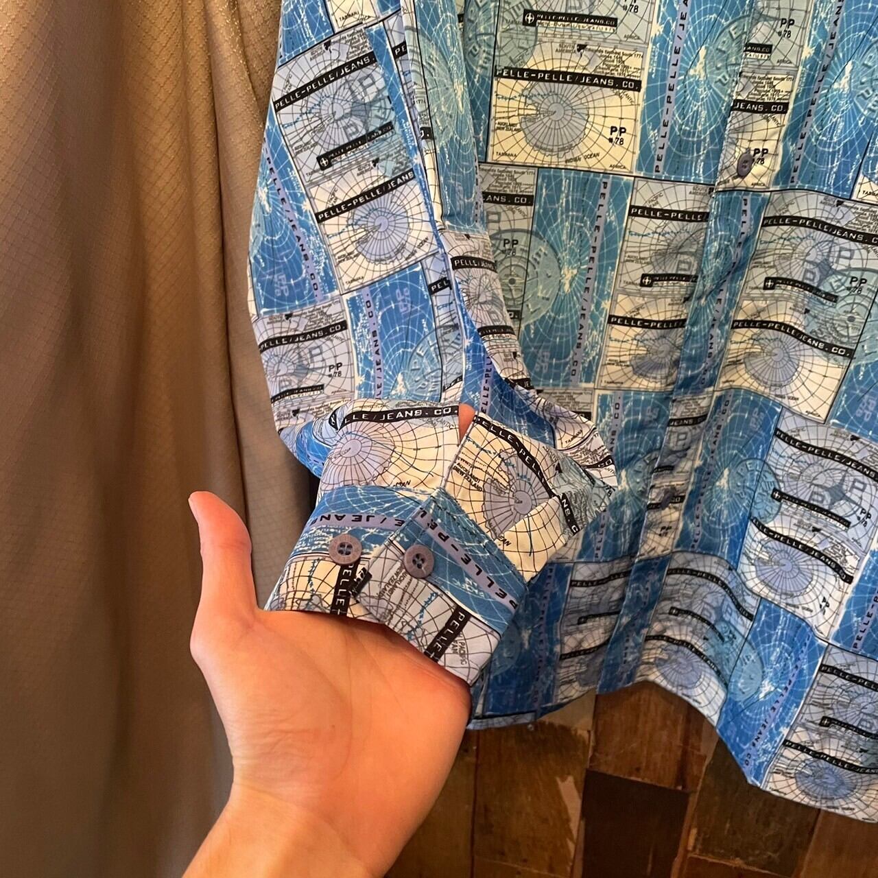 “PELLE PELLE” 90's blue base polyester all over pattern L/S shirt