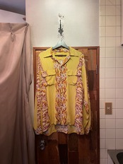 “Reminiscence” 80’s~90’s yellow×dark red rayon L/S open color shirt