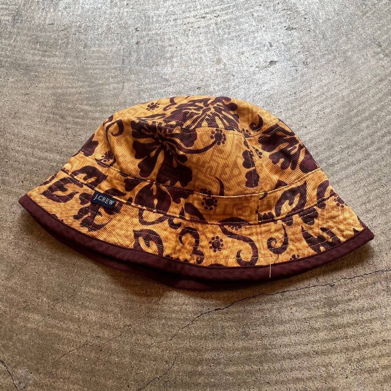 “J.CREW” 00's dead stock! beige×brown cotton hibiscus design hat