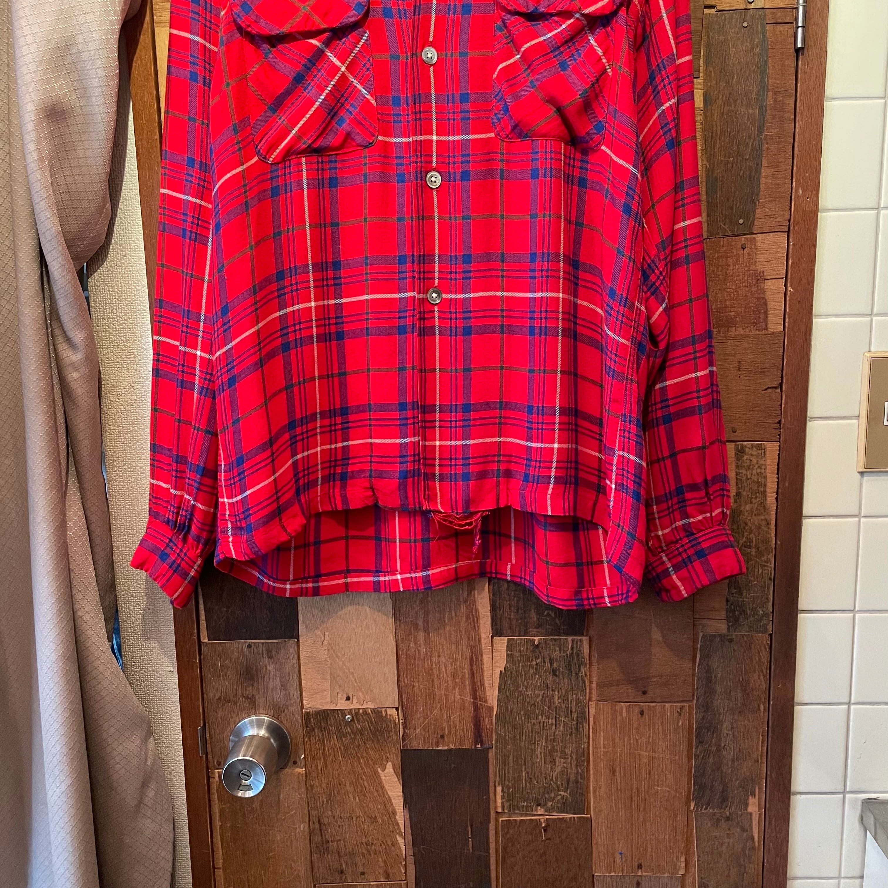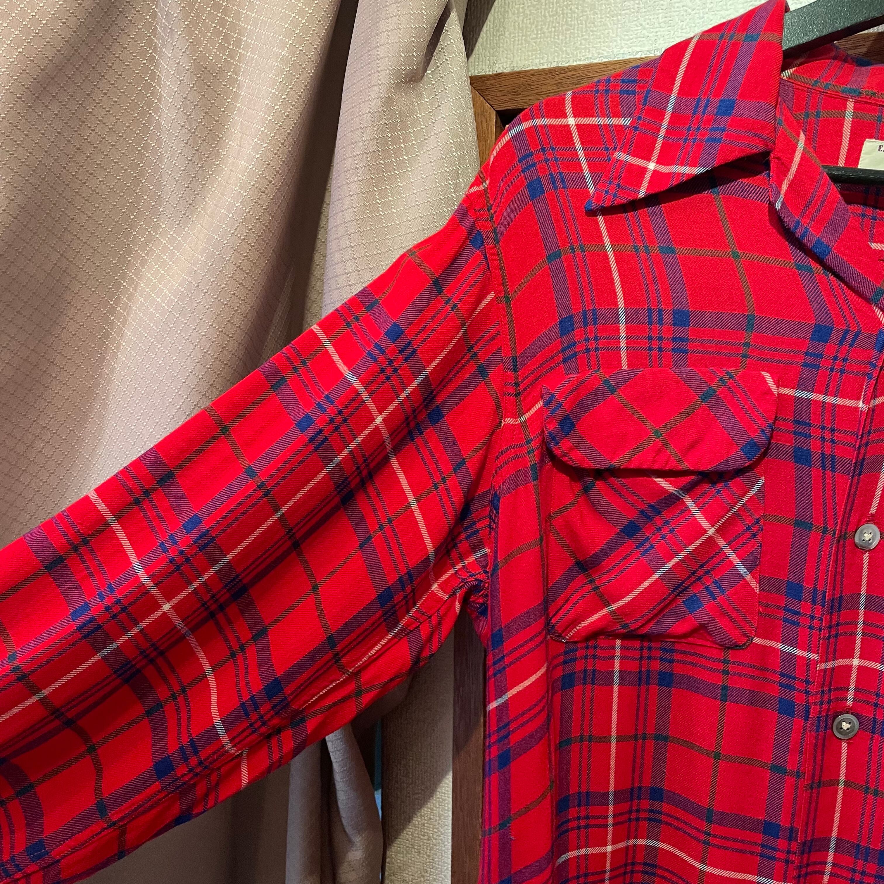 “EAGLE” 60’s vintage check pattern rayon open-collar shirt
