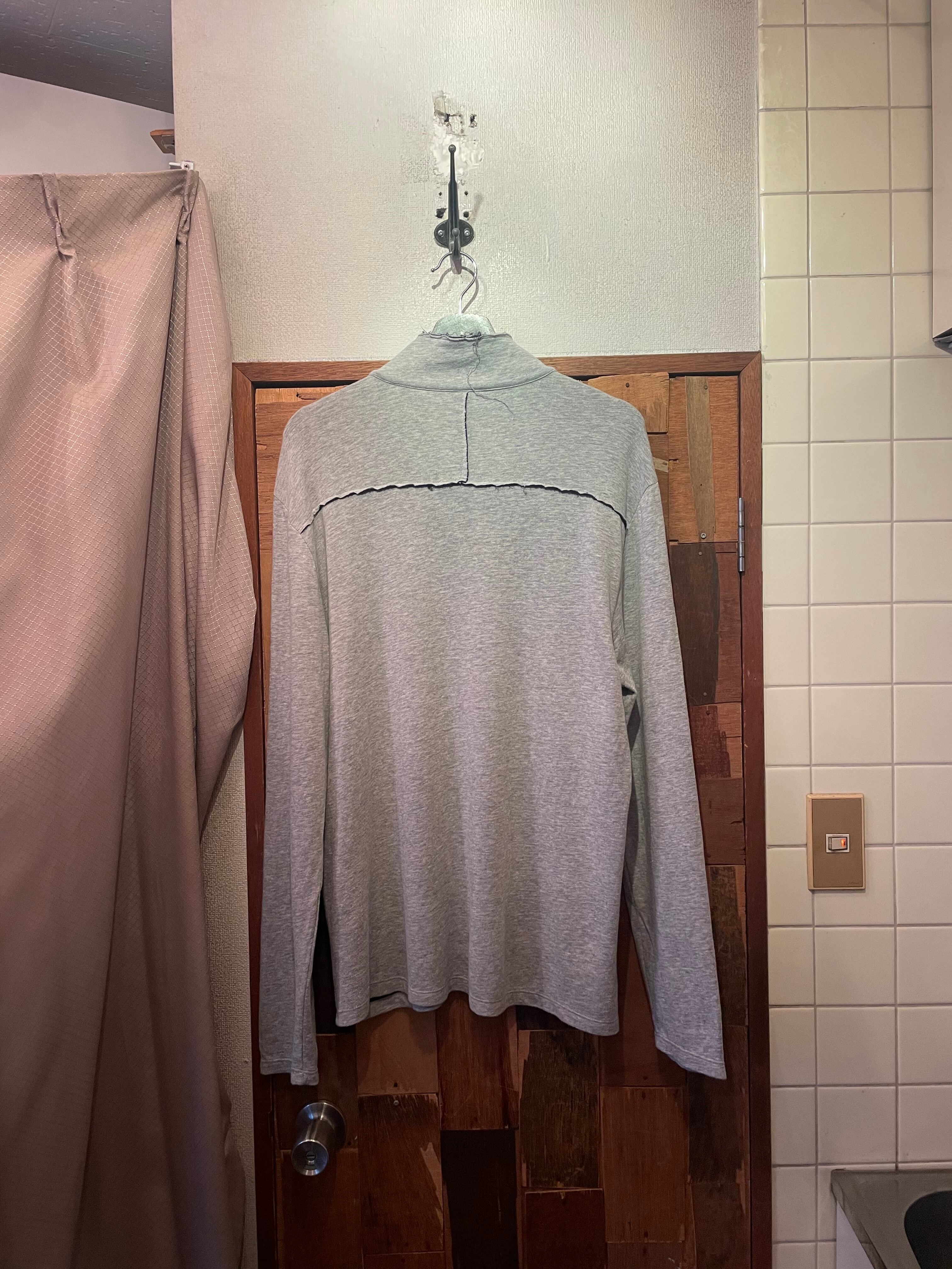 “ARMANI EXCHANGE” gray×black cotton/nylon half-zip L/S Tee