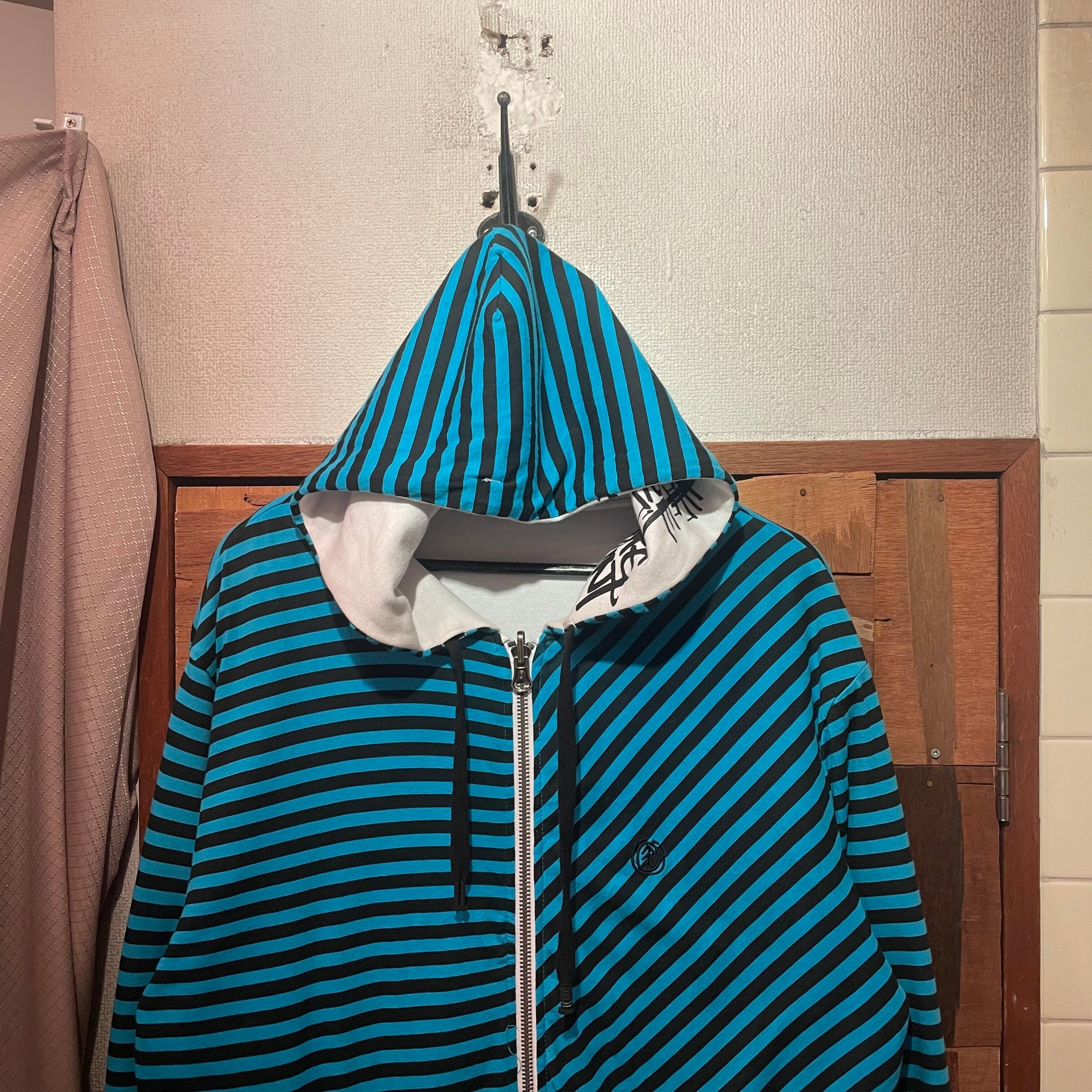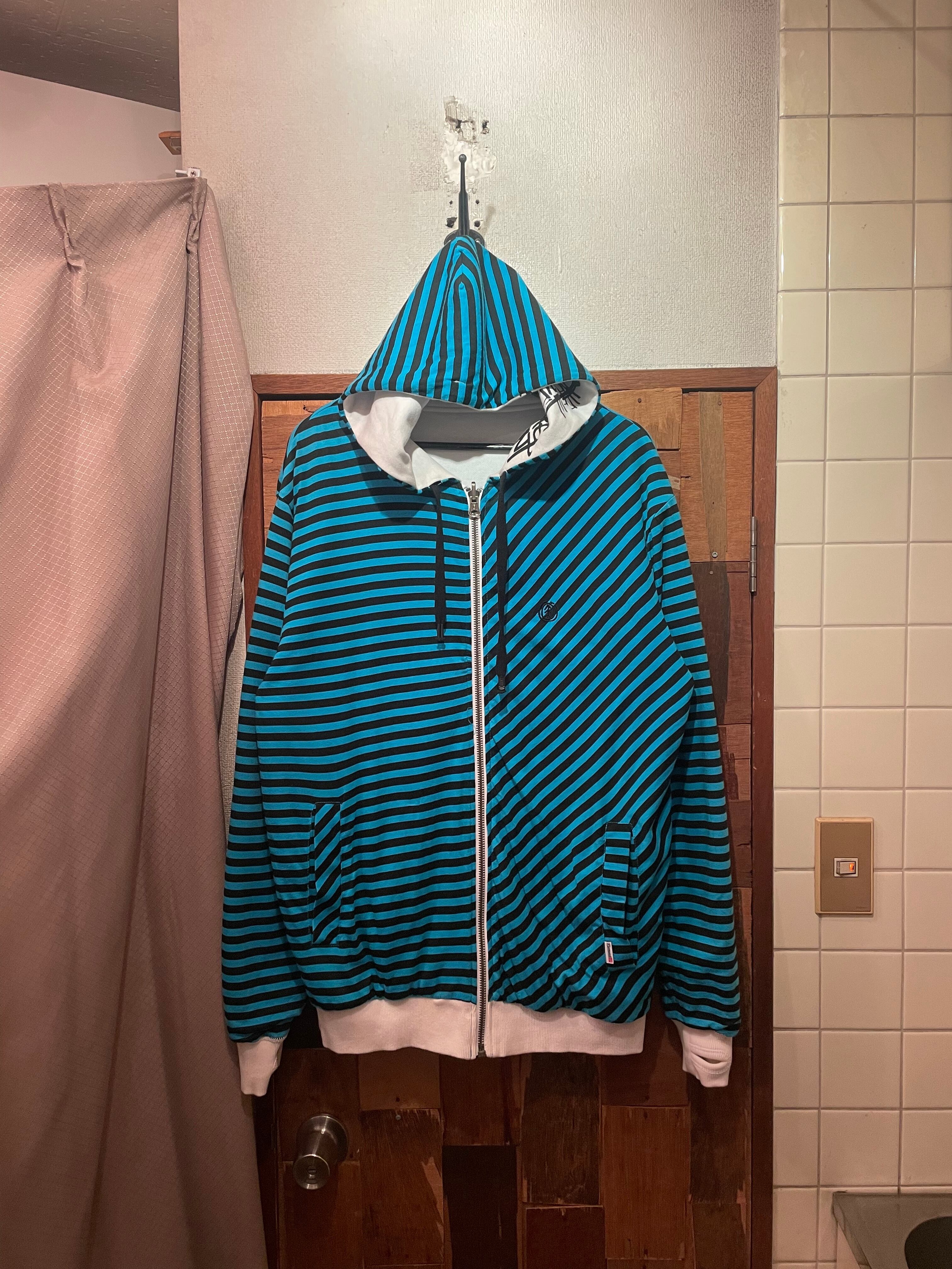 “ELEMENT” white×black×light blue cotton/poly all-over pattern zip-up hoodie