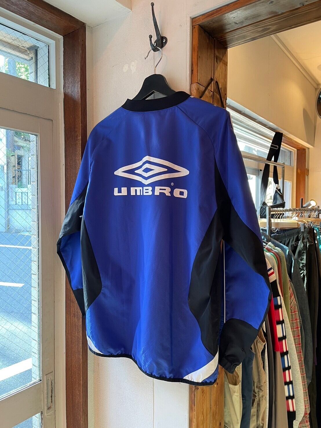 "UMBRO” 90's〜00's 「ガンバ大阪」 blue×black×white polyester design L/S football shirt