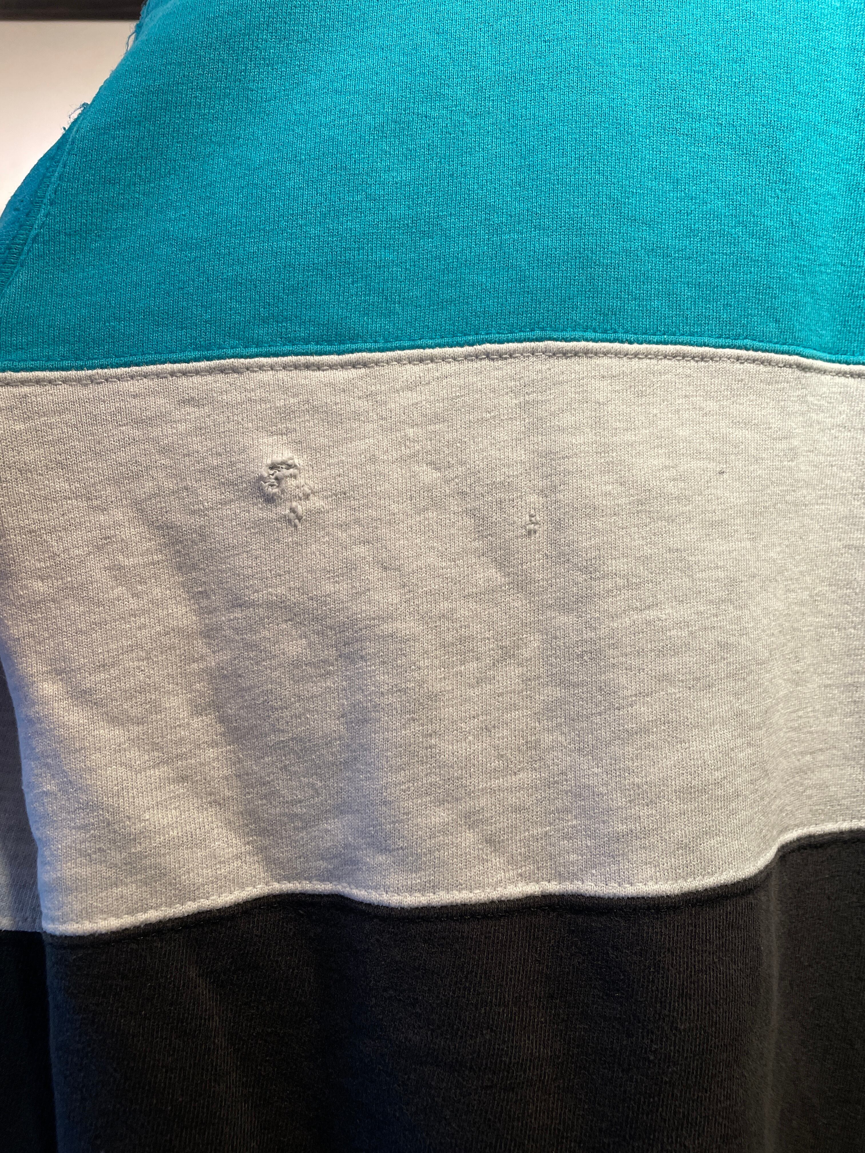 “Champion” 90’s turquoise blue×white×black cotton/poly switch sweat made in U.S.A