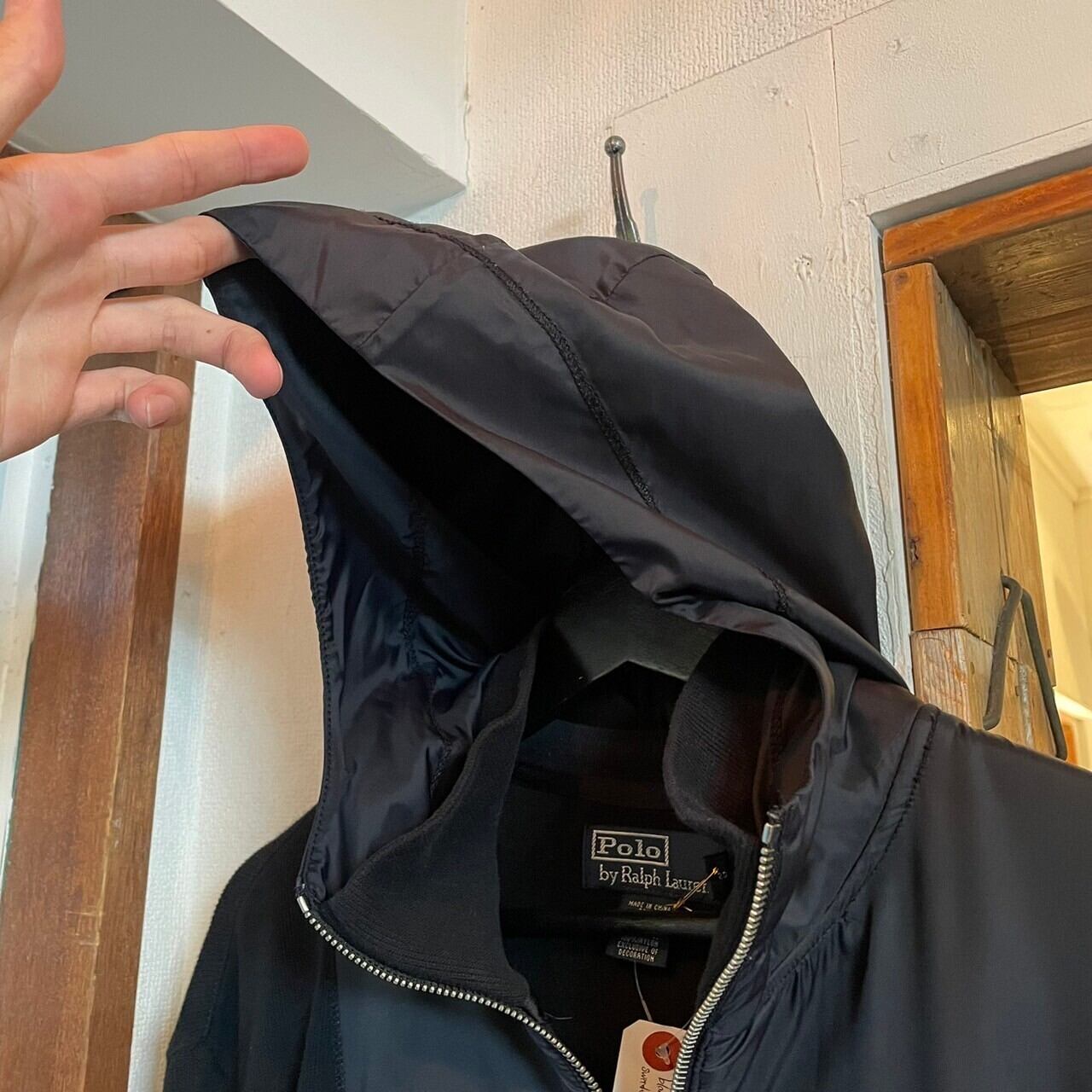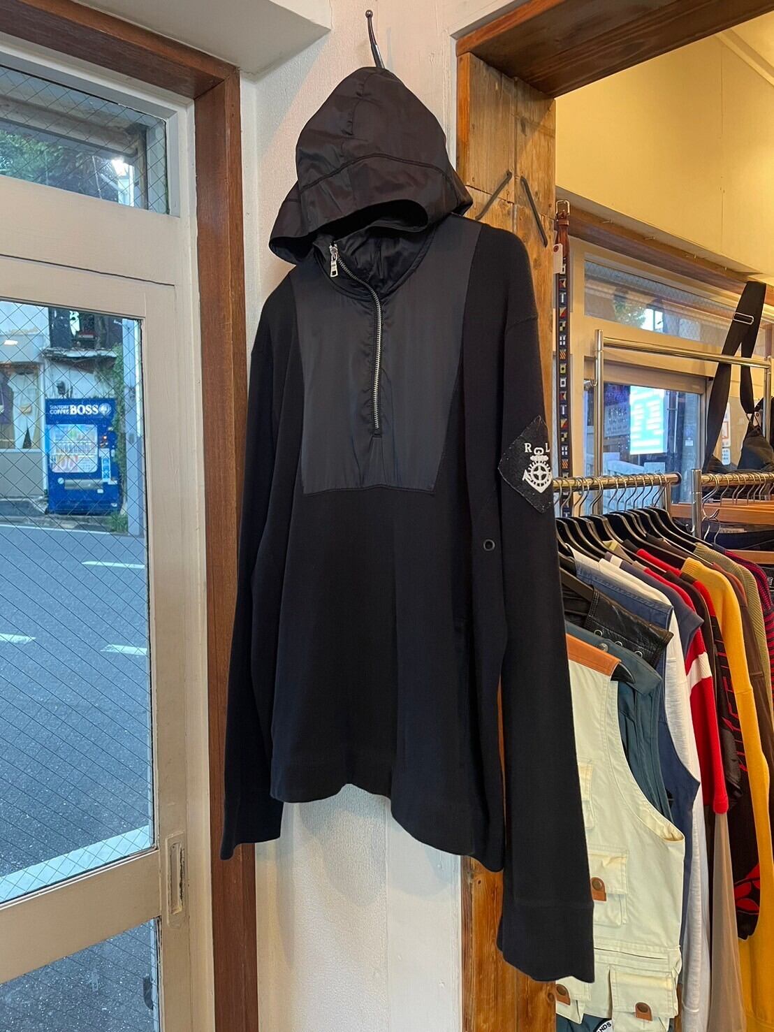 “Polo by Ralph Lauren” black base cotton/nylon switch design half zip hoodie