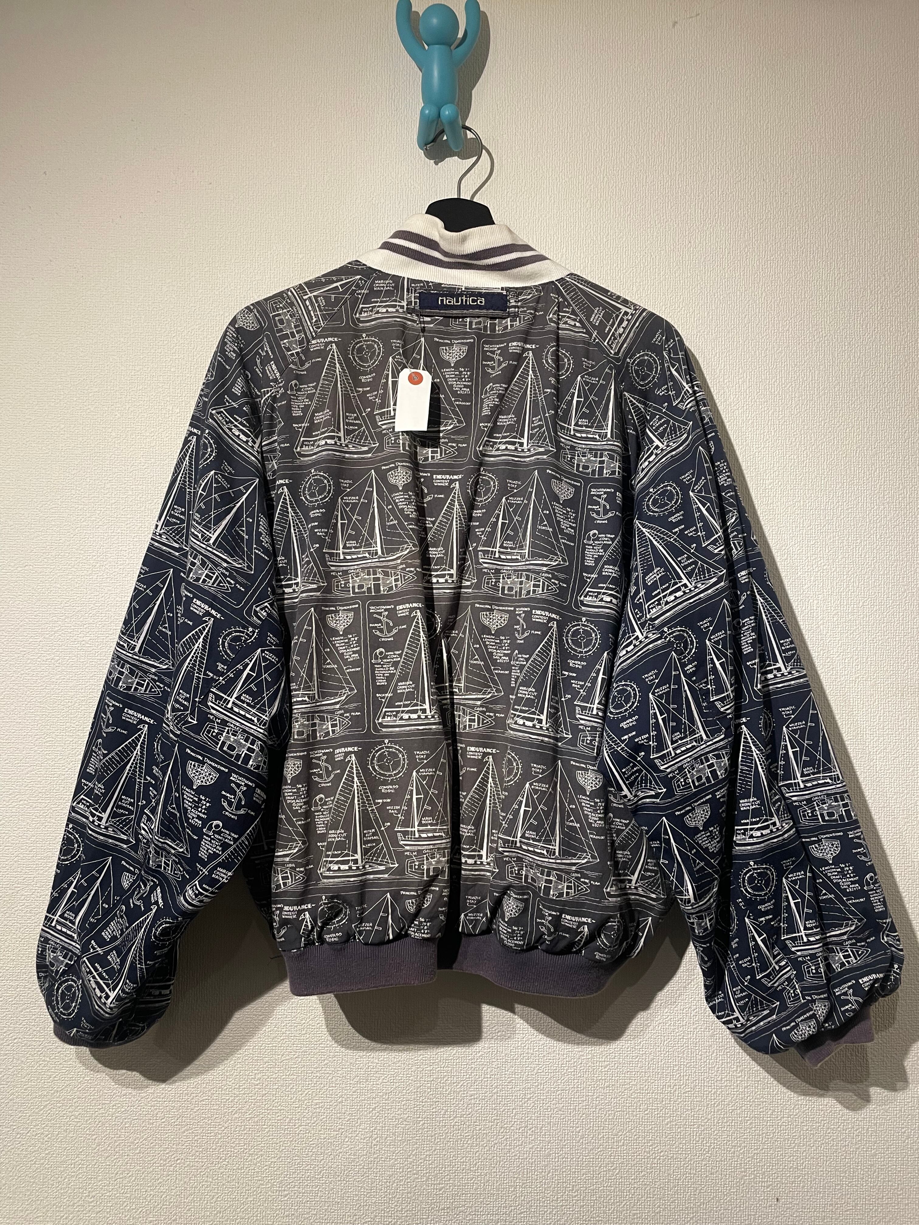“NAUTICA" 90's navy×white×brown cotton all over pattern reversible jacket