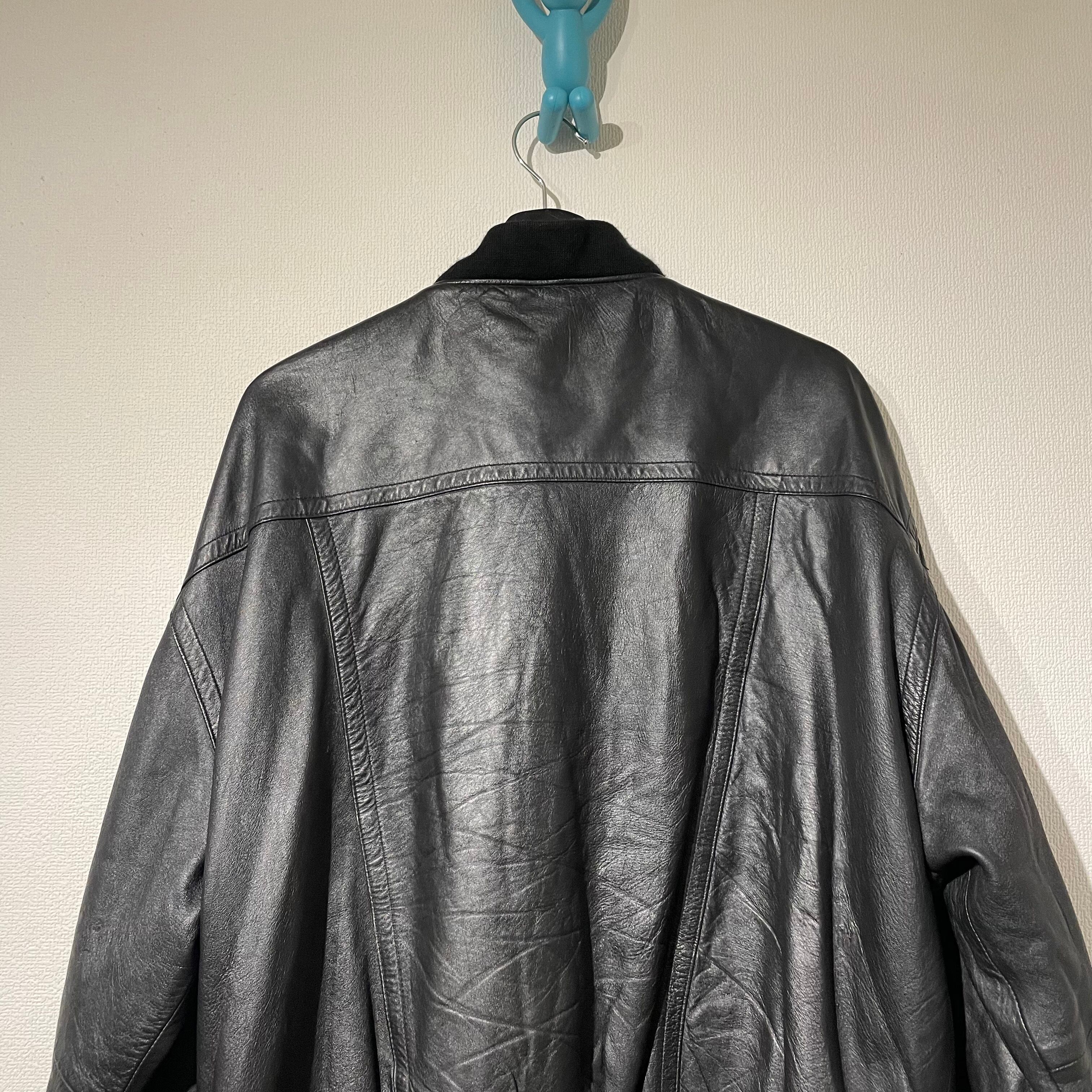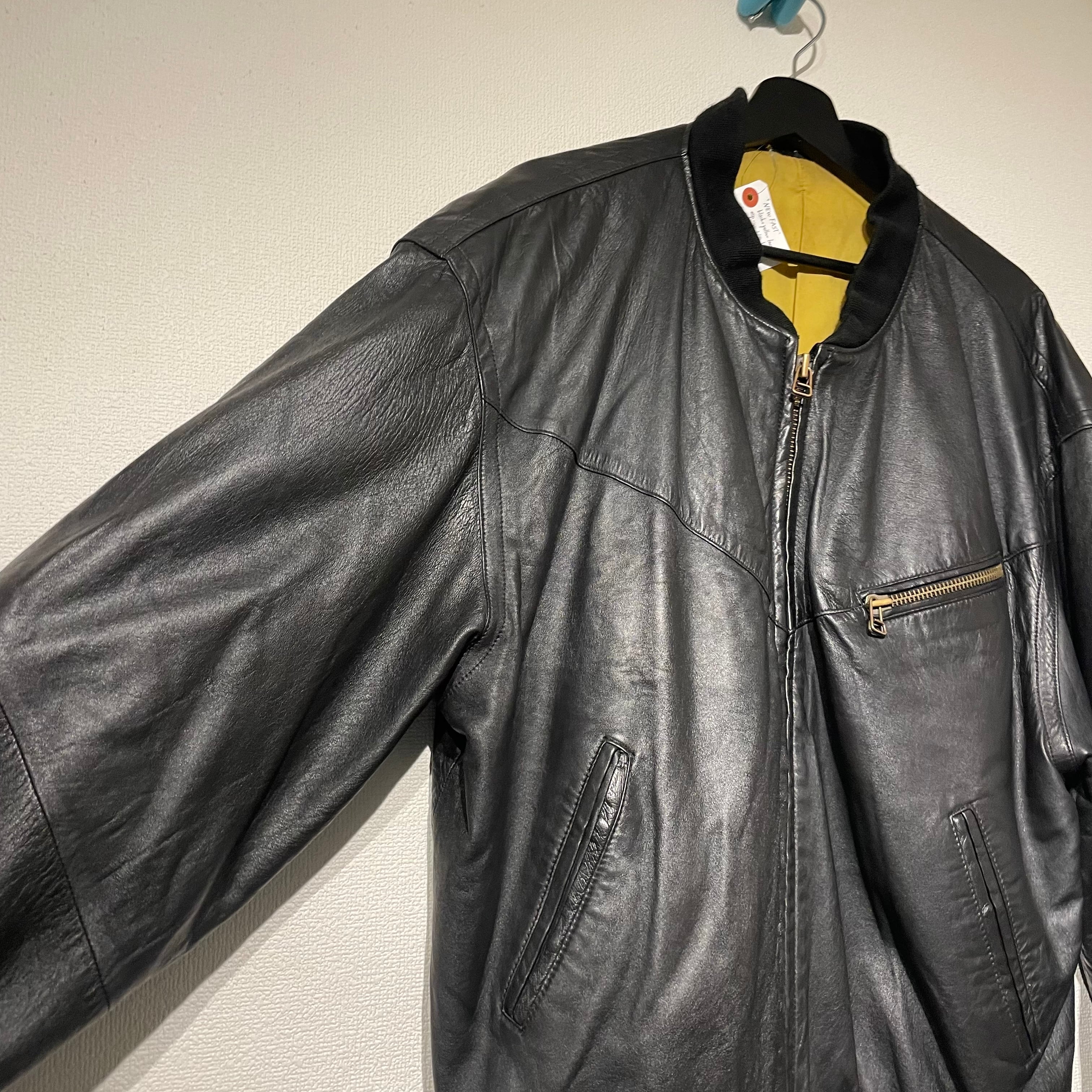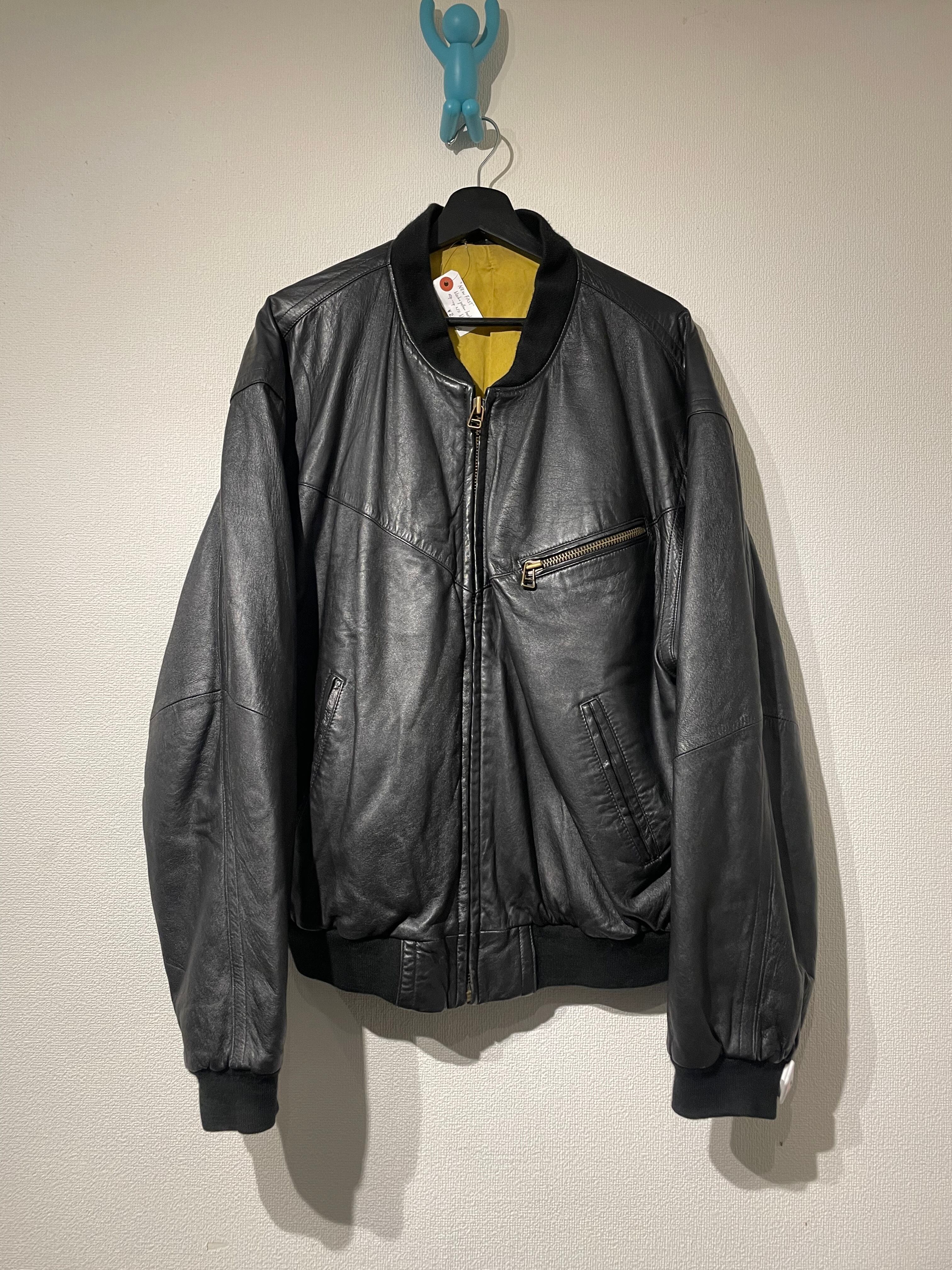 “NEW FAST” black×yellow leather zip-up bomber jacket