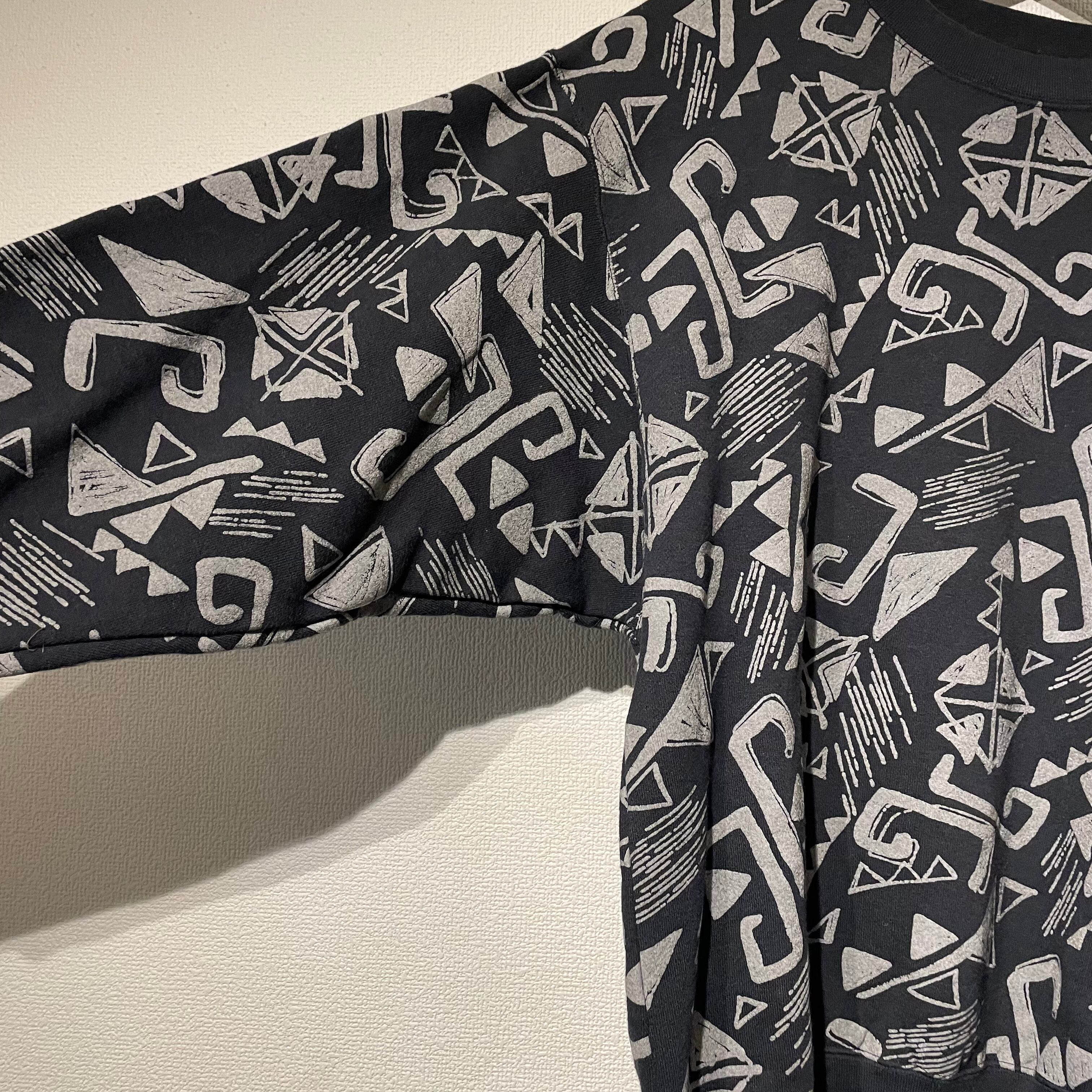 "brand unknown" 80's〜90's black×white cotton/poly rambum pattern design sweat