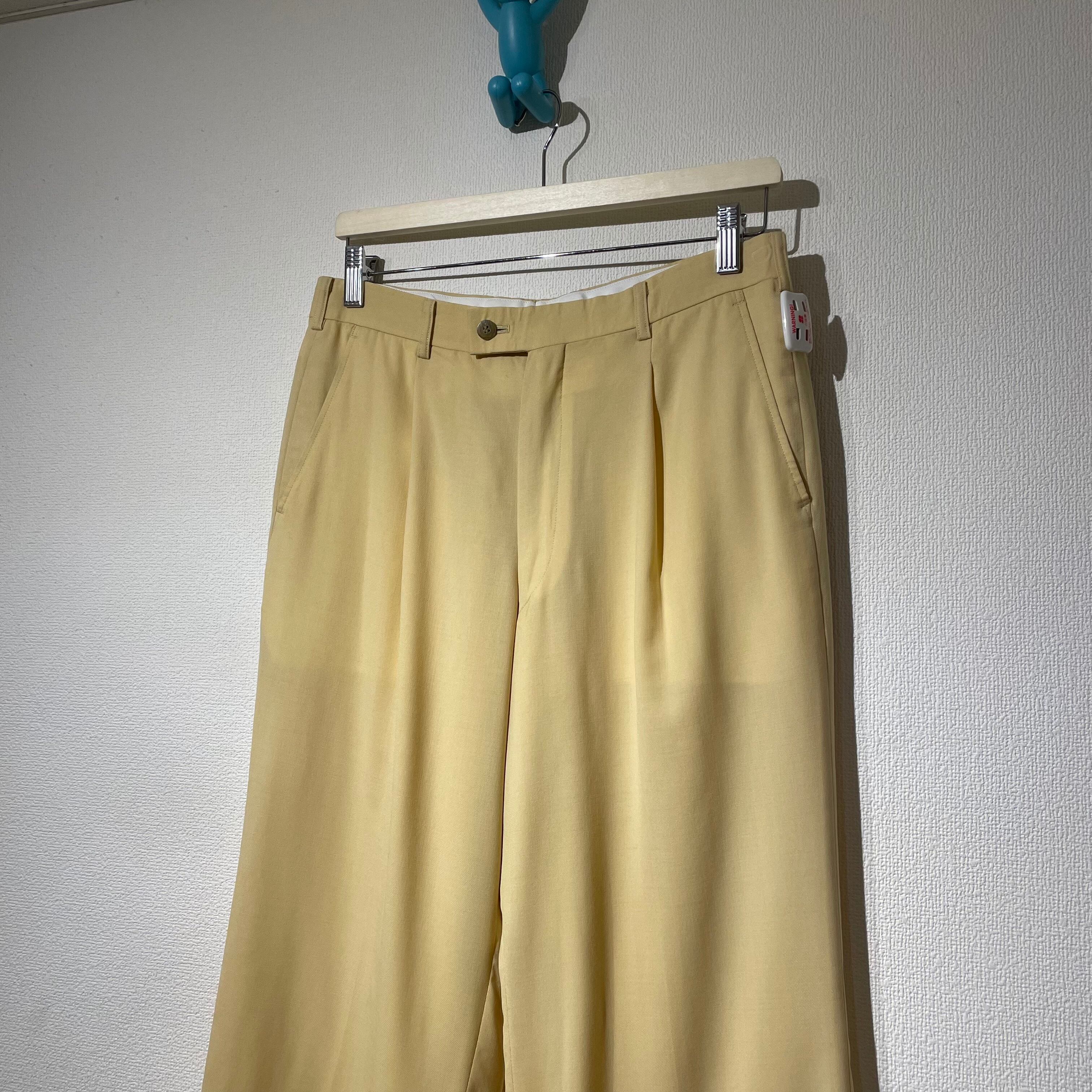 "Christian Dior sports" 90's yellow base wool one tuck easy slacks