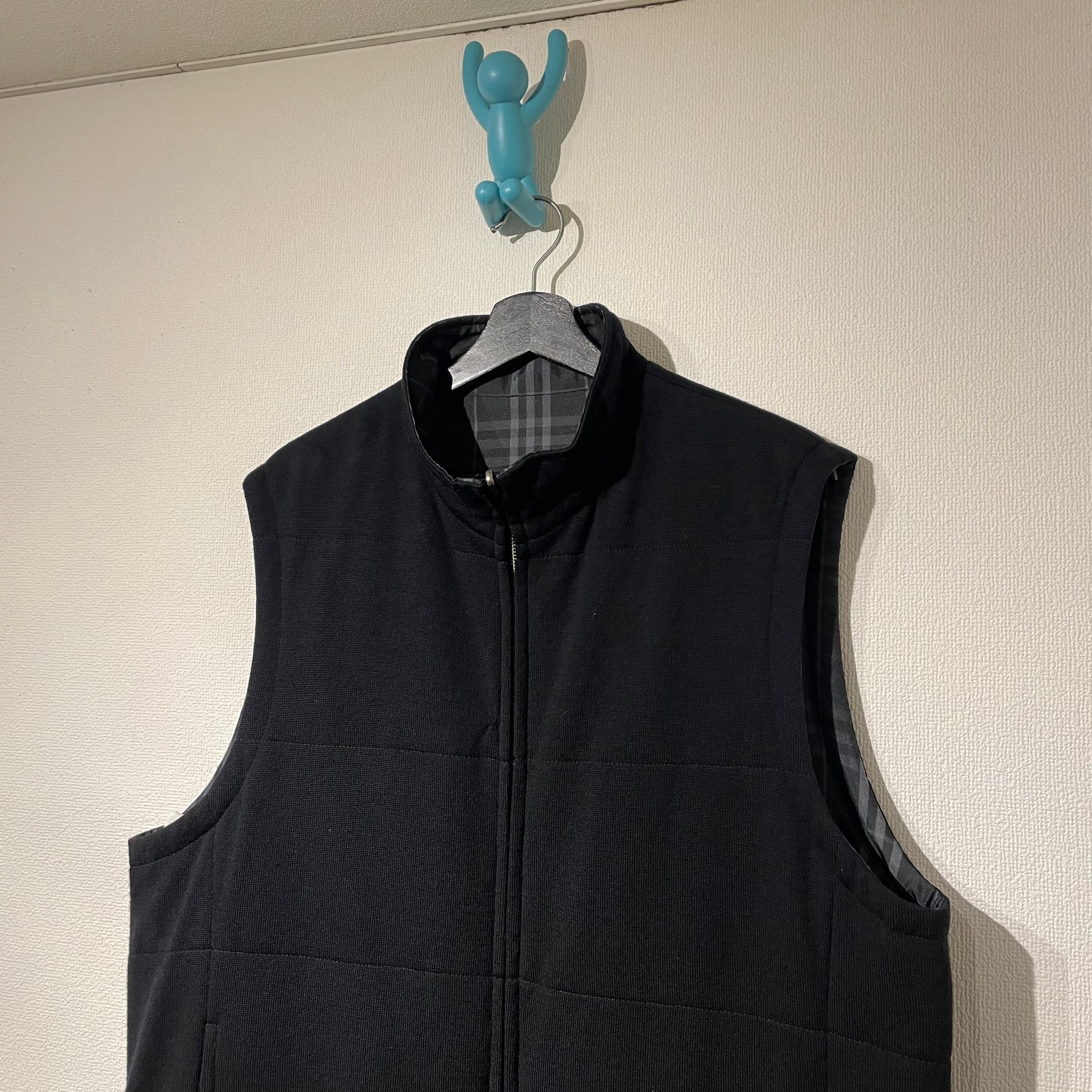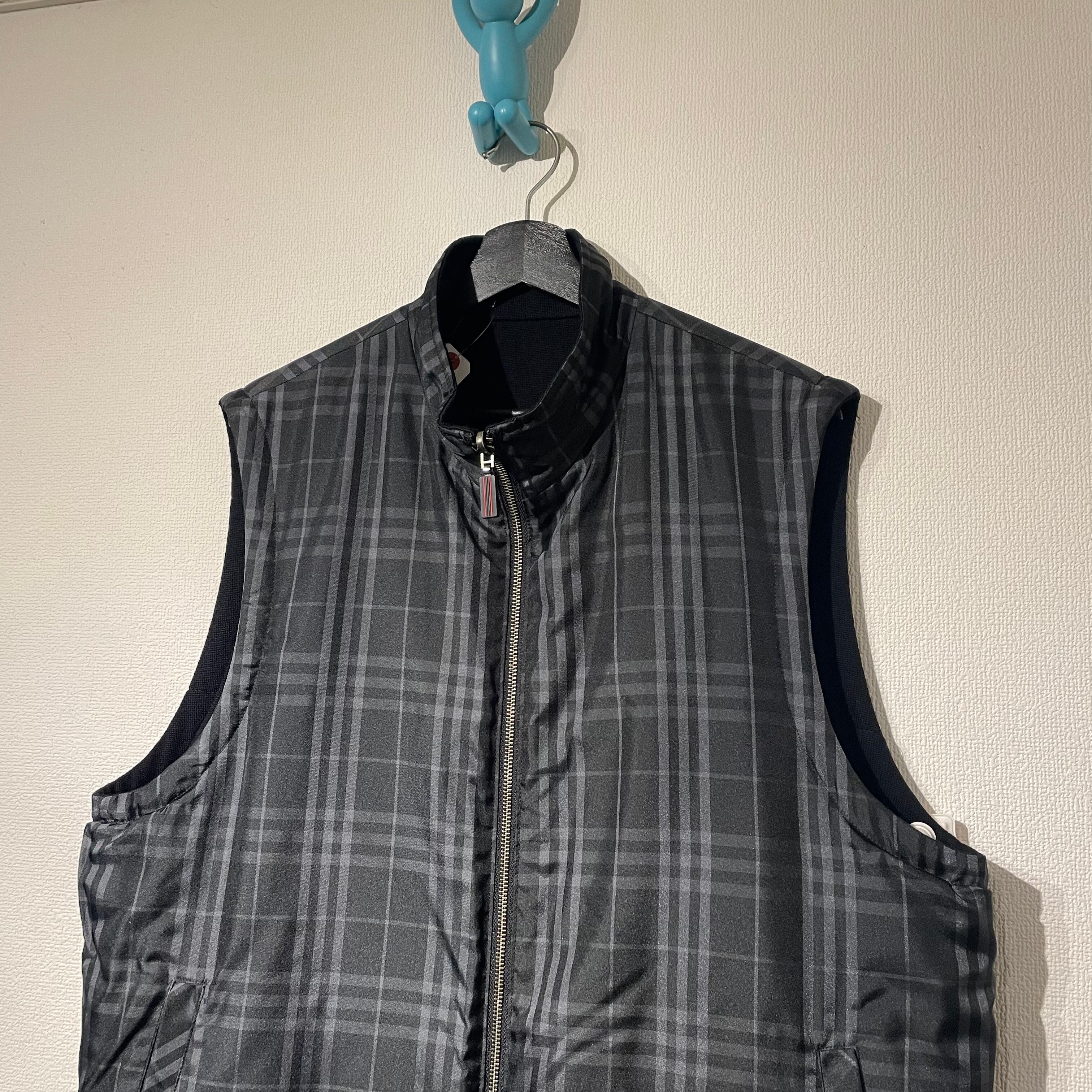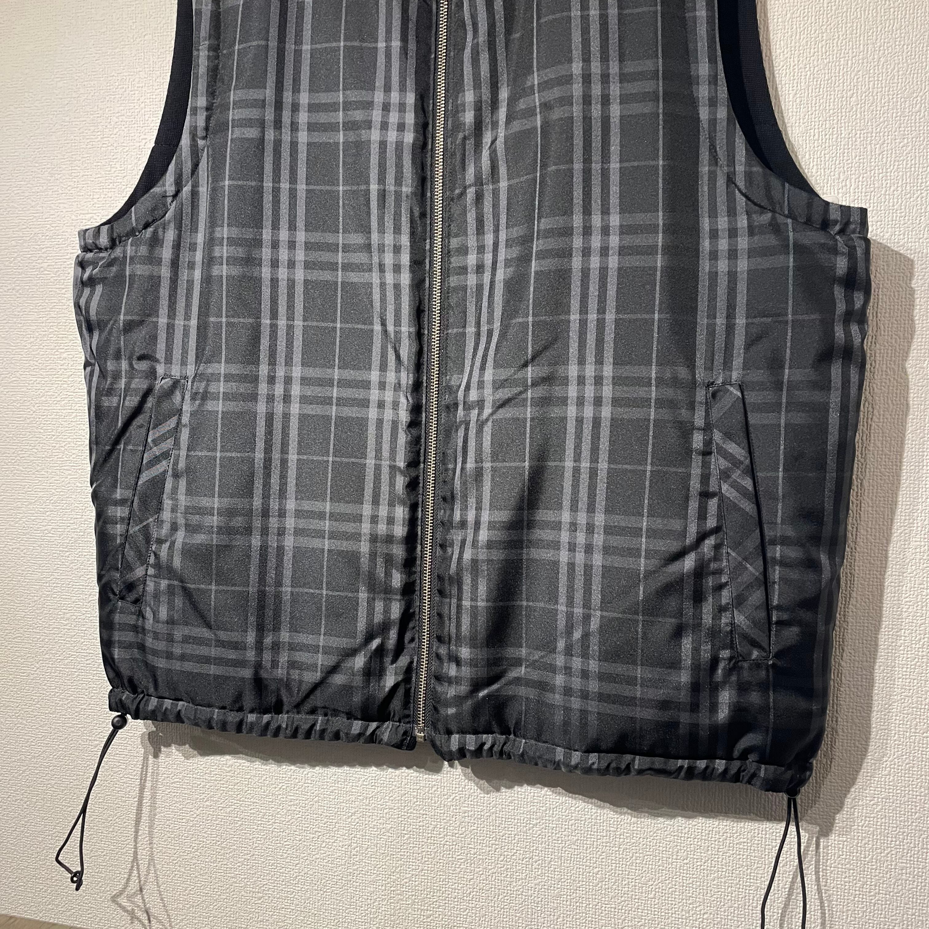“BURBERRY” black×white poly\wool check pattern reversible vest