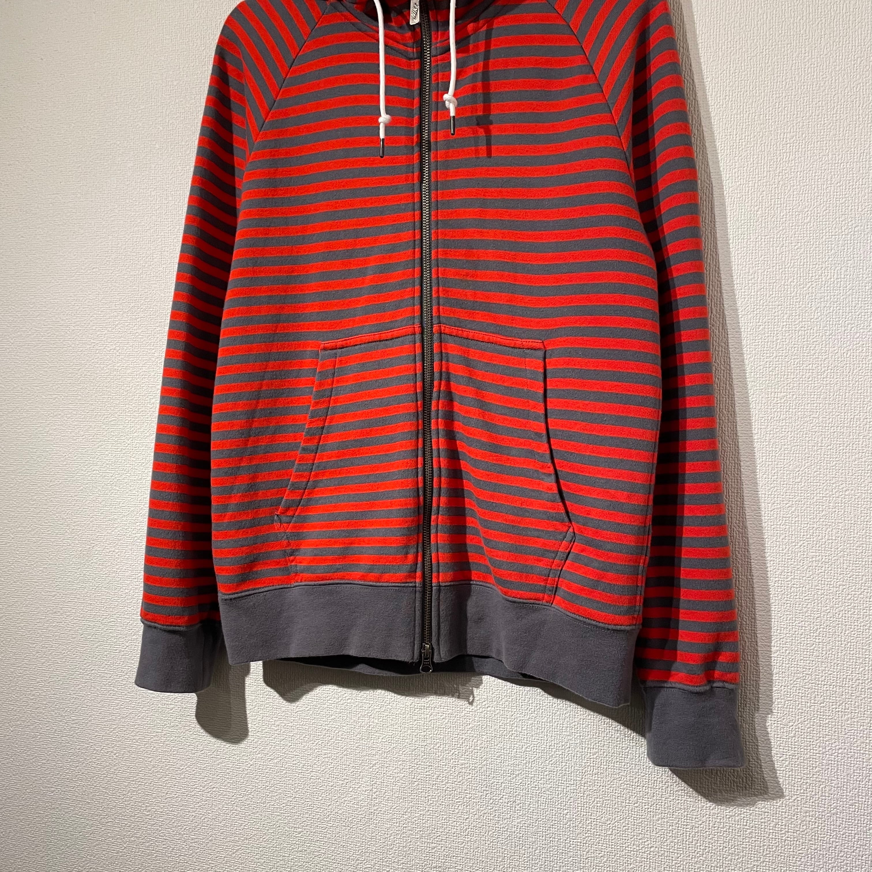 "NIKE" 2012 charcoal× red cotton border zip-up parka
