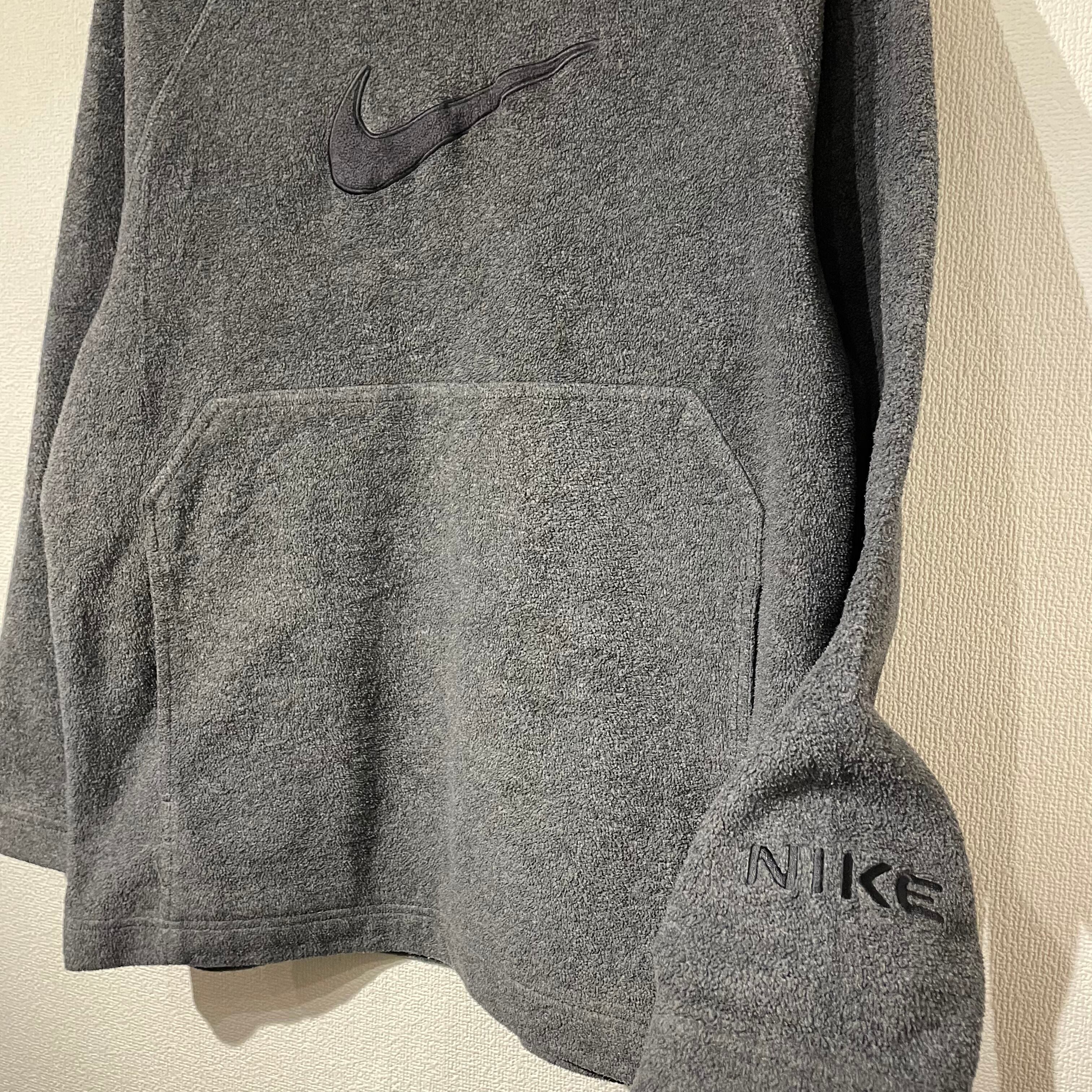 "NIKE" 01's charcoal×black polyester point logo fleece parka