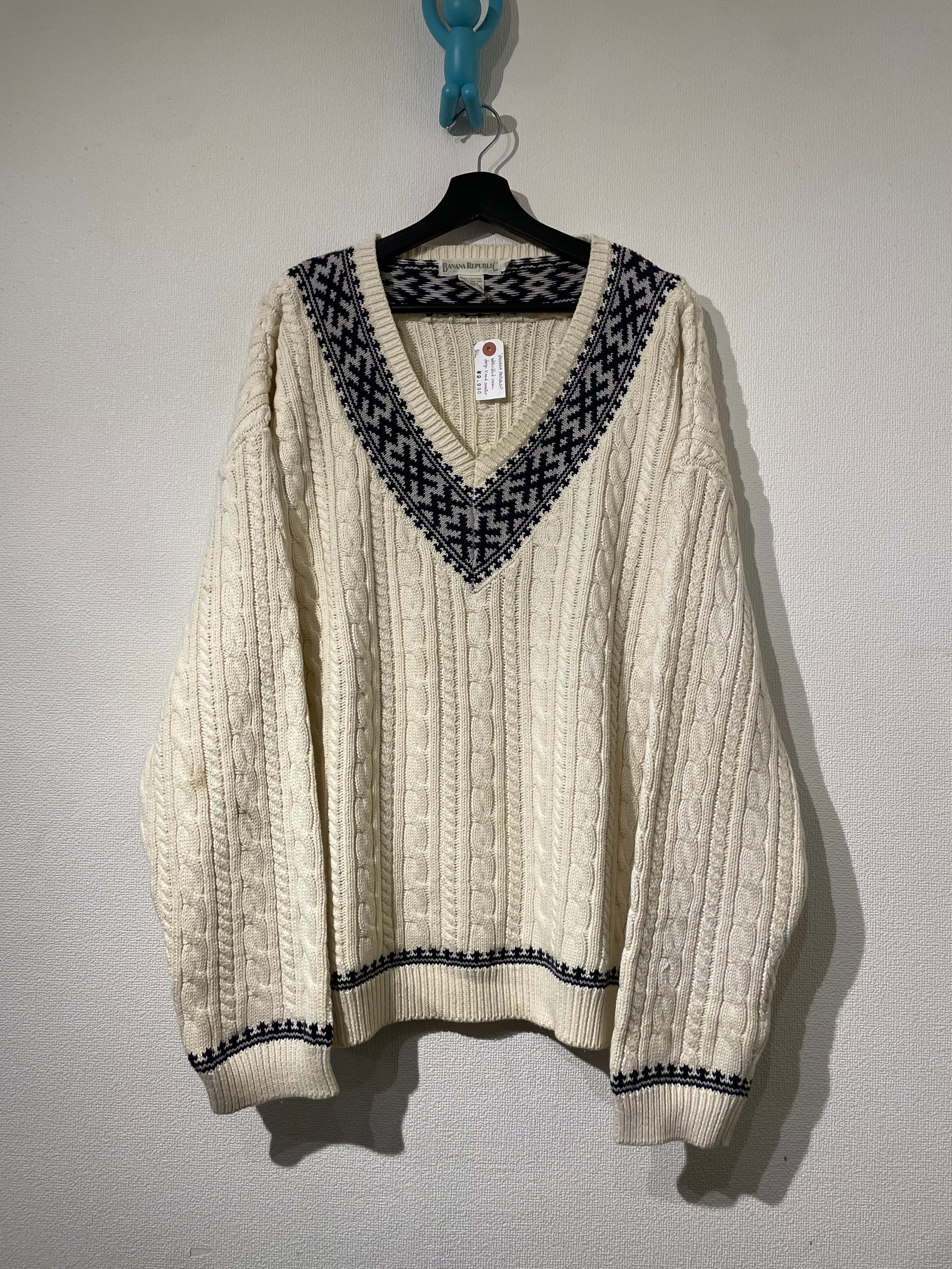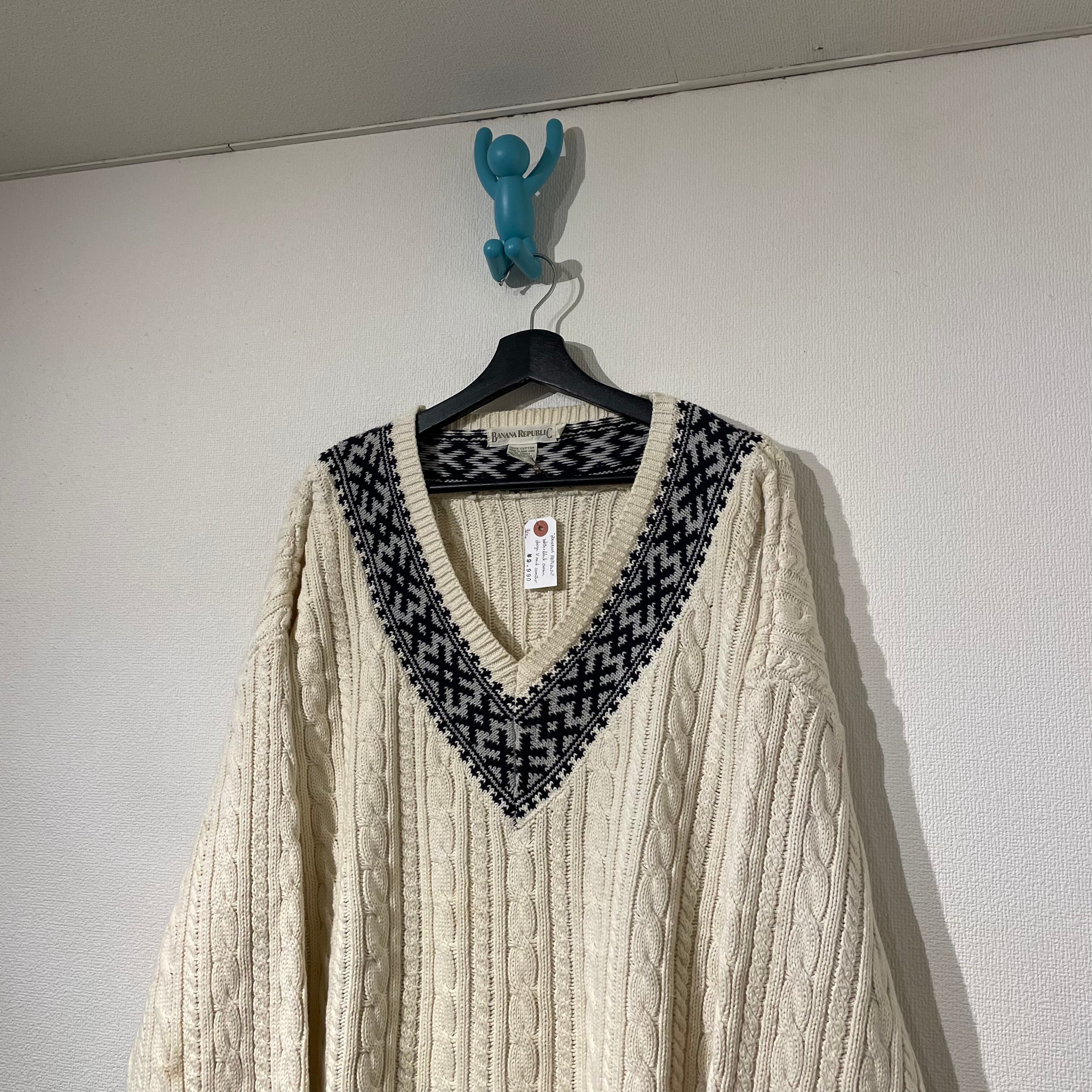 "BANANA REPUBLIC” 90's white×black cotton design V neck sweater
