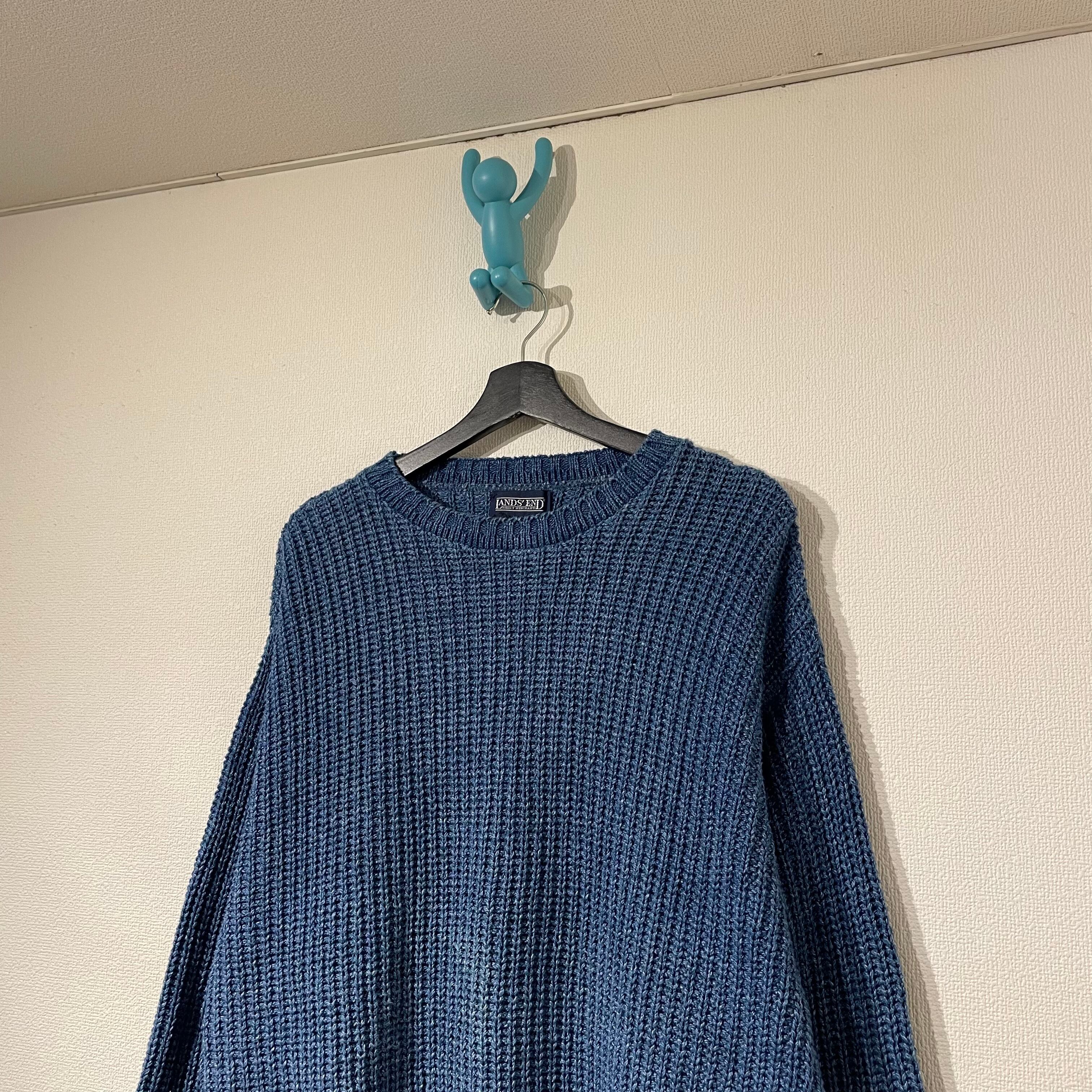 “LANDS’ END” 90's indigo cotton L/S design knit sweater