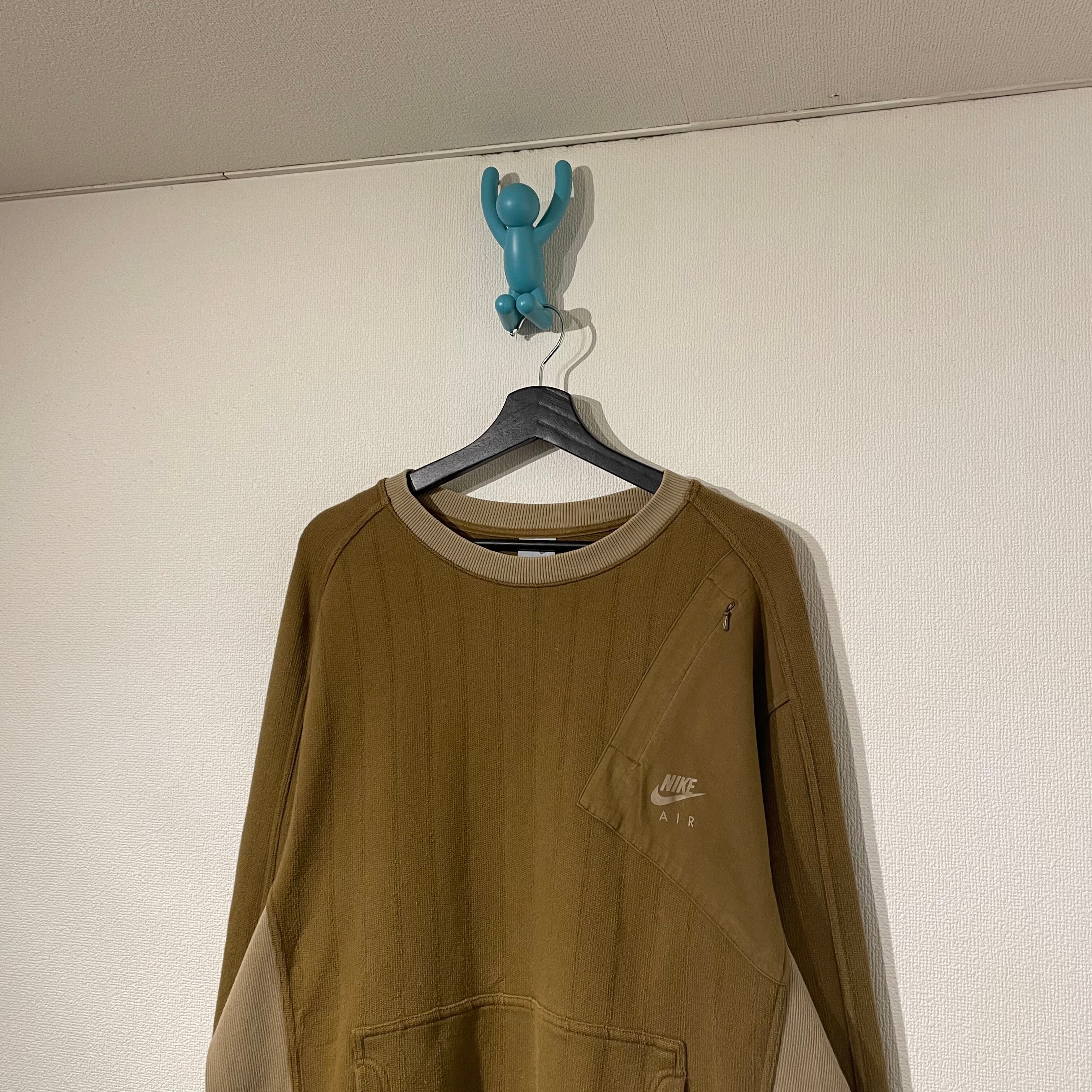"NIKE" 2005AW! brown×beige cotton unique design sweat shirt