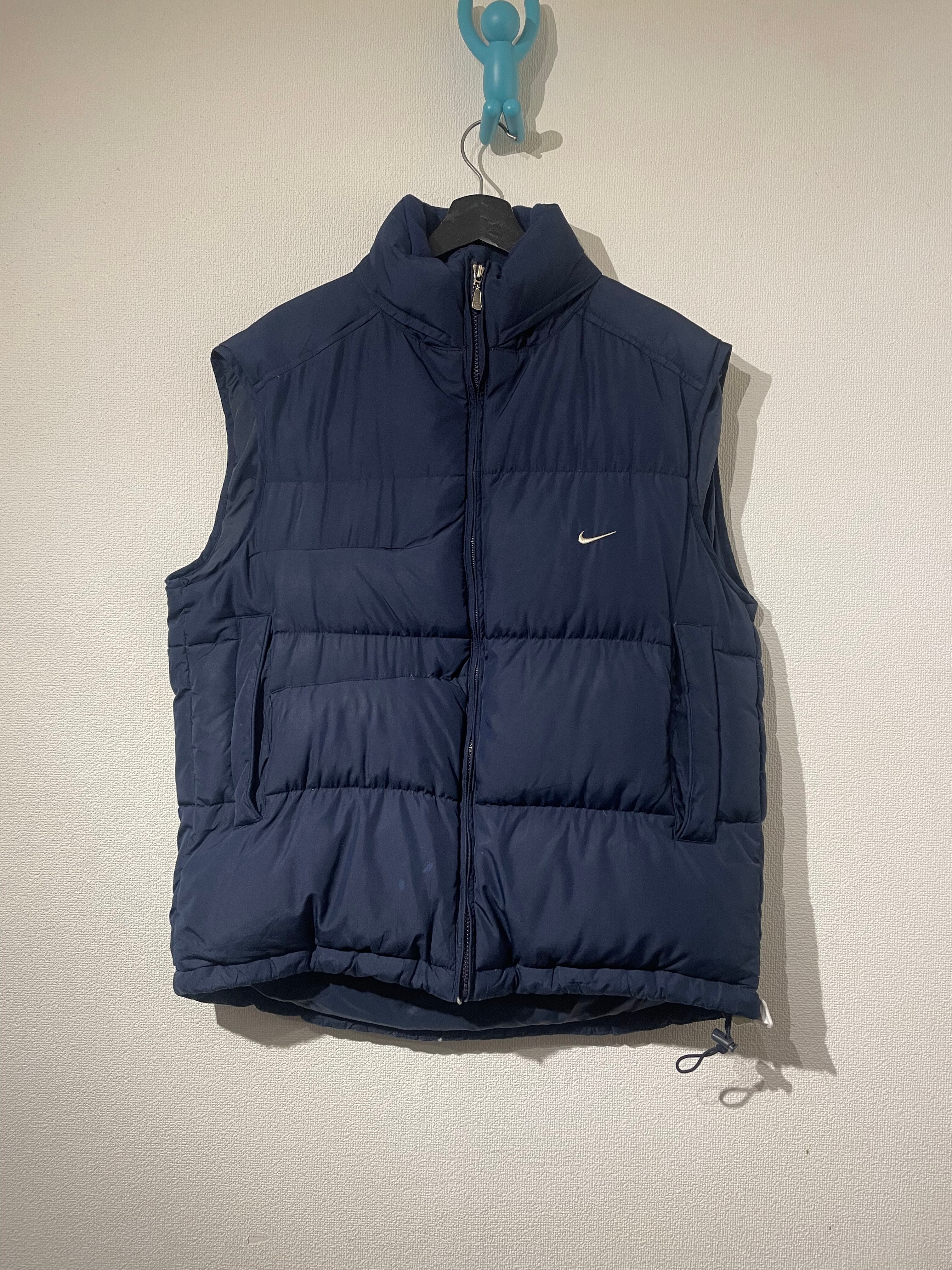 "NIKE" 00's with hood navy nylon one point zip down vest