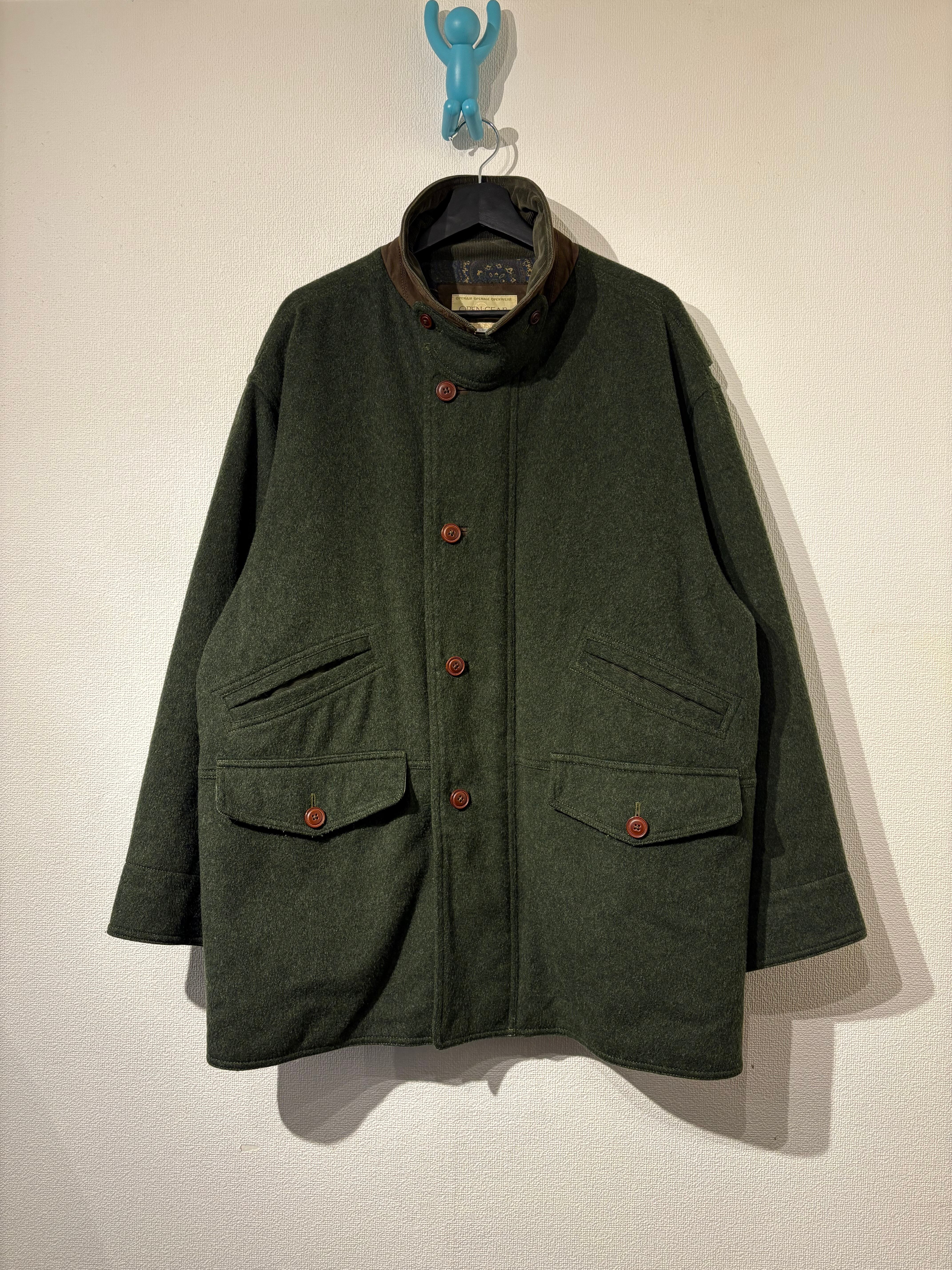 “OPEN GEAR” Australia! moss green corduroy collar LODEN wool coat